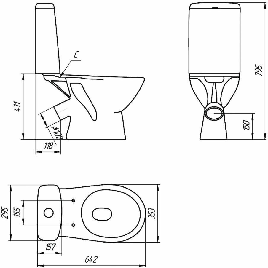 | ВКоробке | Чаша унитаза - 1 шт. Бачок - 1 шт. Крышка-сидение - 1 шт. Инструкция - 1 шт. |