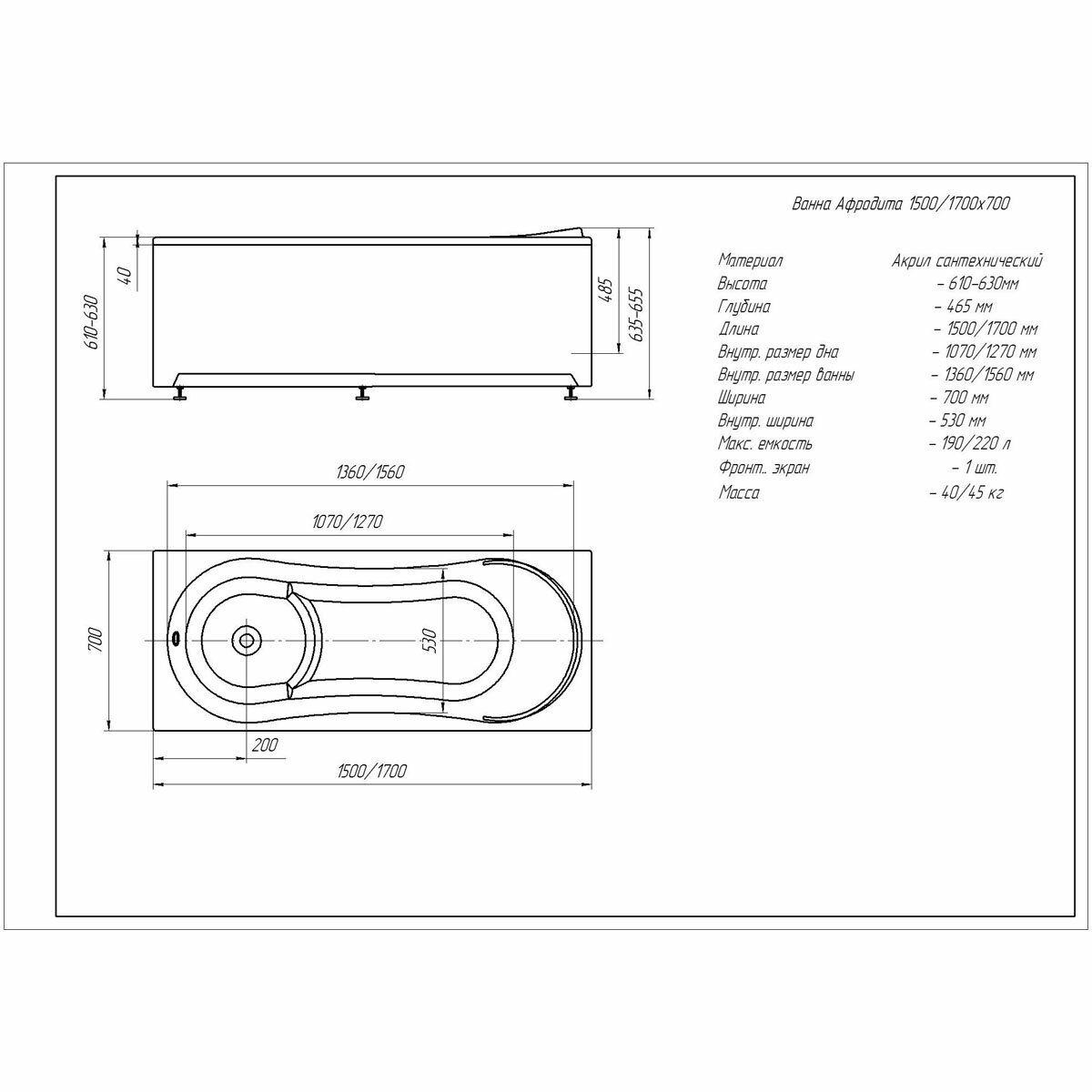 Акриловая ванна Акватек Афродита 170 см бесподобный выбор для создания атмосферы релакса и умиротворения, как в просторной в ванной комнате, так и в комнатном санузле. Акриловые ванны отличаются своей способностью долго сохранять температуру воды и при этом материал очень приятный на ощупь.