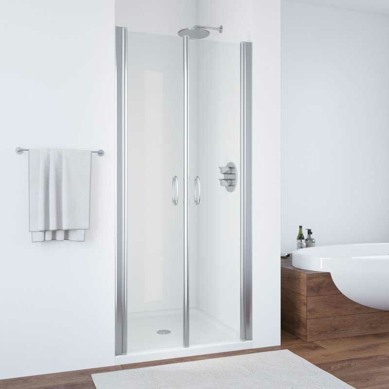 Дверь двухстворчатая распашная. Безопасное прозрачное, шиншилла, бронза, сатин, фея, ретро, флёр-де-лис, жасмин стекло 6 мм. Алюминиевый профиль белого цвета или хром (матовый, глянцевый), бронза, золото. Поддон в комплект не входит. ВНИМАНИЕ! Цена указана за прозрачное стекло, цвет профиля глянцевый хром, стоимость других вариантов стекла и профиля уточняйте у менеджеров.