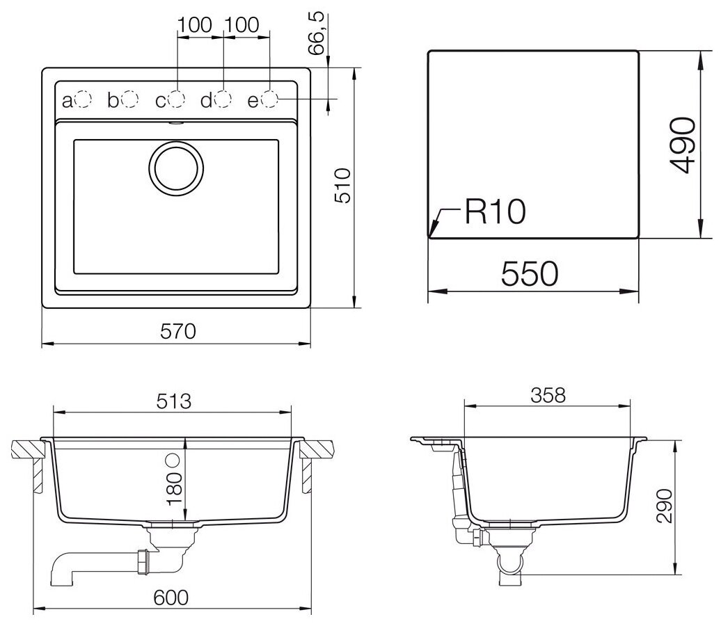 | Намеченные отверстия под смеситель | 5 |