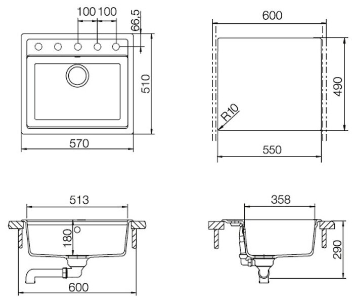 | Готовые отверстия под смеситель | 0 |