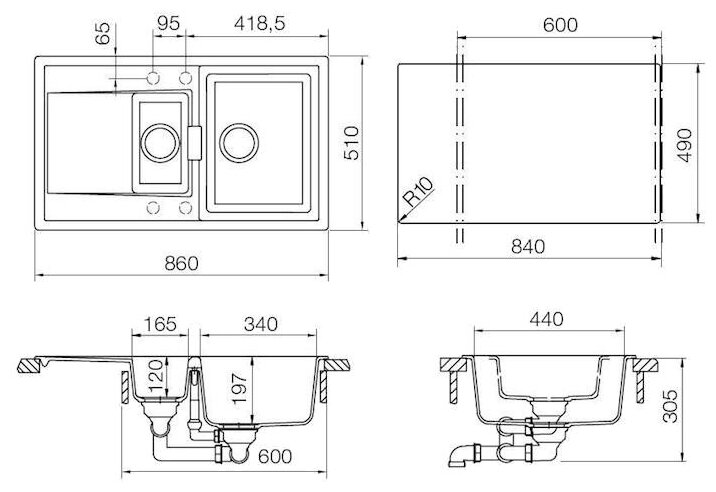 | ВКоробке | Мойка - 1 шт. Корзинчатый вентиль - 2 шт. Сифон - 1 шт. Слив-перелив - 1 шт. Клапан-автомат - 1 шт. Инструкция - 1 шт. |
