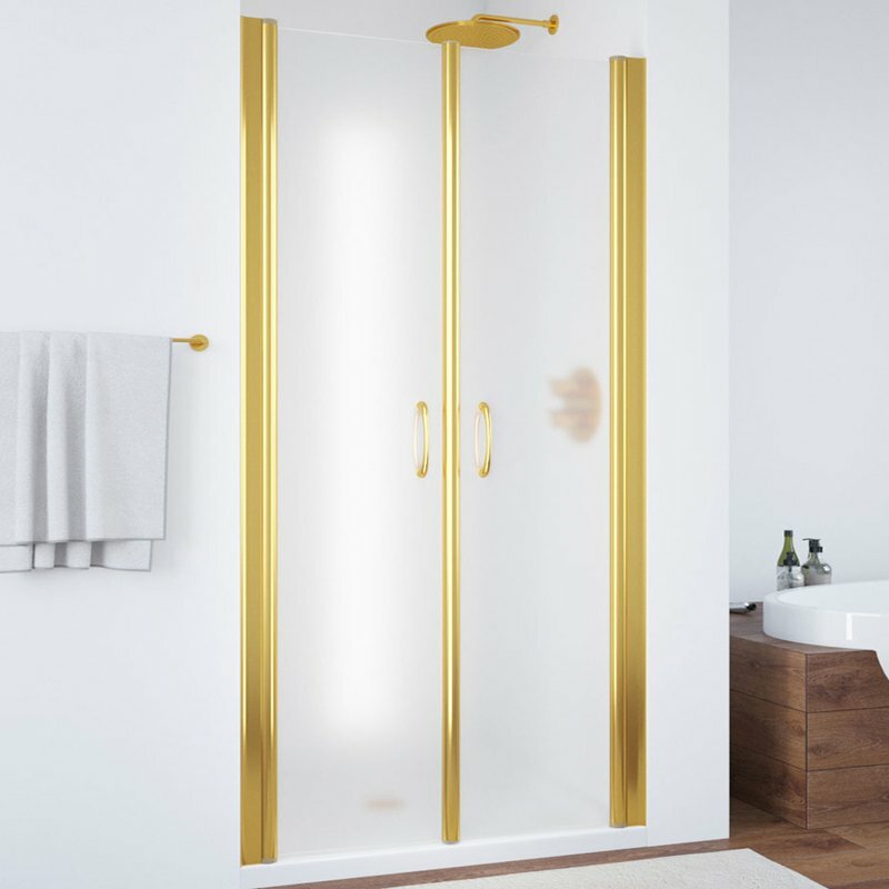 Душевая дверь Vegas Glass E2P прямоугольной формой размером 92.5 см высотой 189 см создаст значительное пространство внутри, для вашего комфорта. Цвет профиля Vegas Glass E2P - золото, это великолепный вариант для современного интерьера. Конструкция дверей распашная, состоящая из 2 секций, это наиболее распространённая и надежная модель, однако стоит обязательно учитывать ширину открывания самой двери при монтаже других предметов сантехники. Стекло у душевой двери Vegas Glass представлено в матовом исполнении, толщиной 6 мм, отлично будет гармонировать с любым дизайном интерьера ванной. Vegas Glass E2P спроектирован дизайнерам с четким соблюдением всех значительных элементов современного стиля.