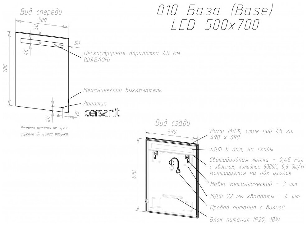 В производстве используют только качественные влагостойкие материалы (МДФ), в составе которых отсутствуют опасные вещества. Серия LED отличается превосходным дизайном с соблюдением всех важных элементов современного стиля. Основным цветом, в котором выполнено зеркало Cersanit LED является зеркало, гармонирующий с большинством интерьерных решений. Важные габариты изделия: ширина 50 см, глубина 4 см, высота 70 см.