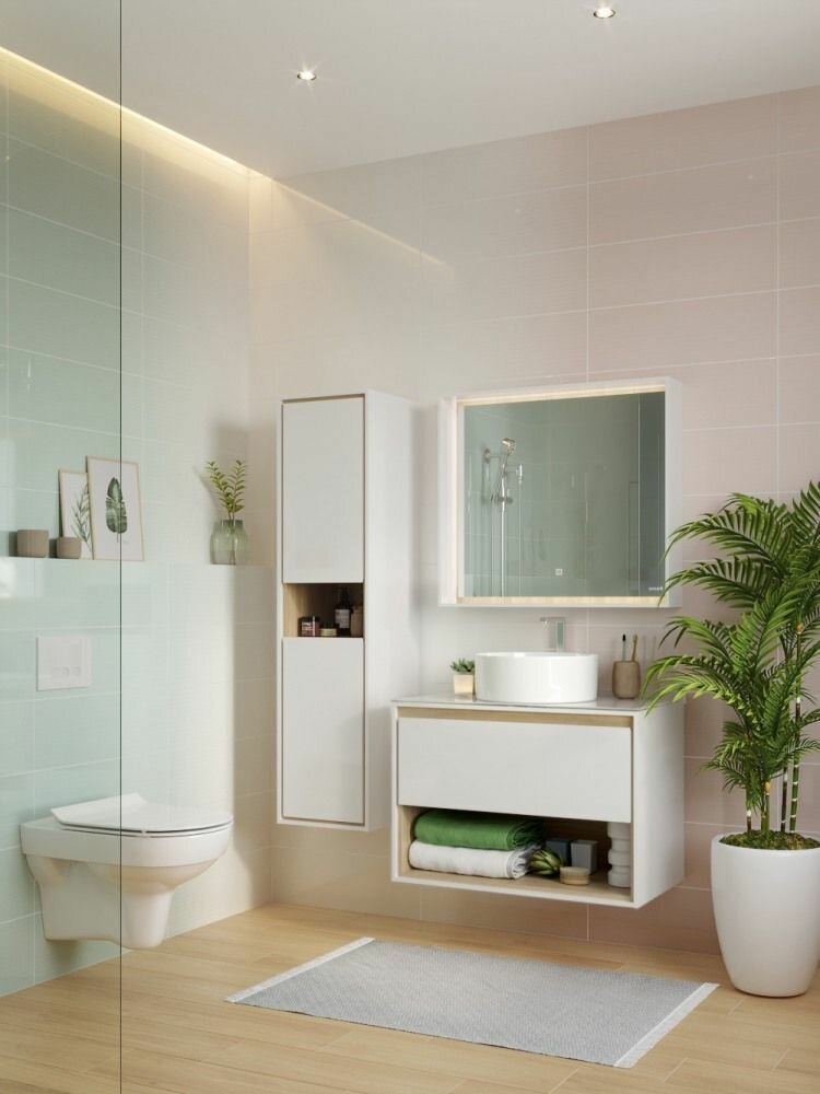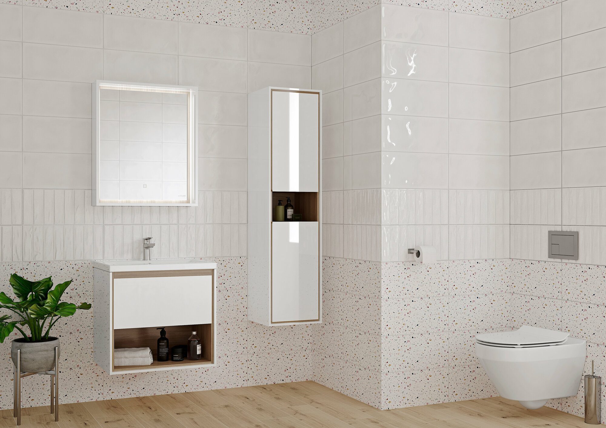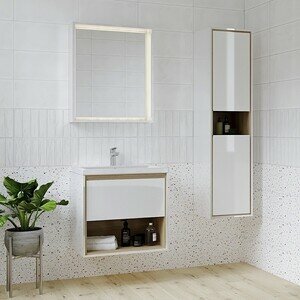 LOUNA это коллекция, отвечающая последним тенденциям рынка: сочетание чистоты белого цвета и натурального дерева.Основной отличительной особенностью коллекции является её дизайн сочетание белого с деревом, фрезерованная ручка, выдвижной ящик и удобная открытая полка для хранения.Пенал оборудован стеклянными полками и открытой нишей. Зеркала в коробе ЛДСП оборудованы сенсорной подсветкой.
