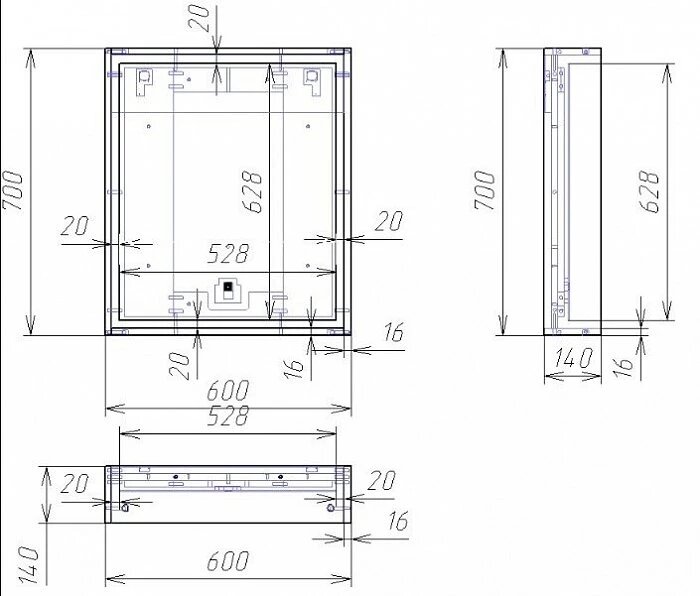 | Габариты (ВxШxГ) (см) | 70x60x14 |