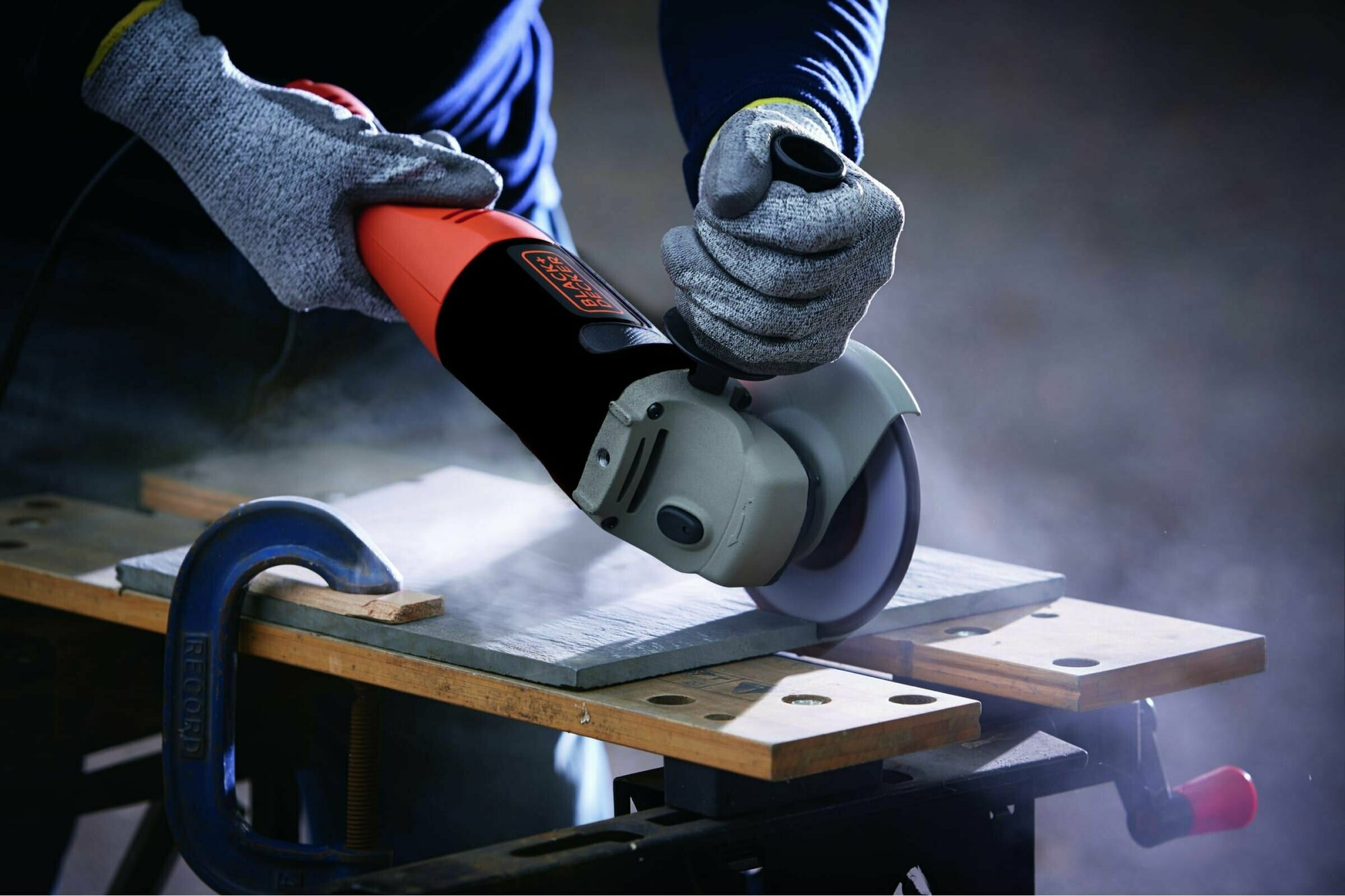 Black&Decker имеет удлиненную рукоятку для большего удобства. Система безопасности продумана до мелочей. Кроме металлического кожуха, который оберегает от искр, предусмотрен расцепитель нулевого напряжения. Он позволяет предотвратить случайный запуск, что привело бы к получению травм. Воздушное охлаждение увеличивает цикл использования. Плавный пуск исключает рывки и повреждение обрабатываемого материала. Трехпозиционная боковая рукоятка предоставляет дополнительный хват и увеличивает маневренность. Black&Decker будет полезна там, где необходима большая мощность. Инструмент актуален при укладке тротуарной плитке или монтаже металлических конструкций.