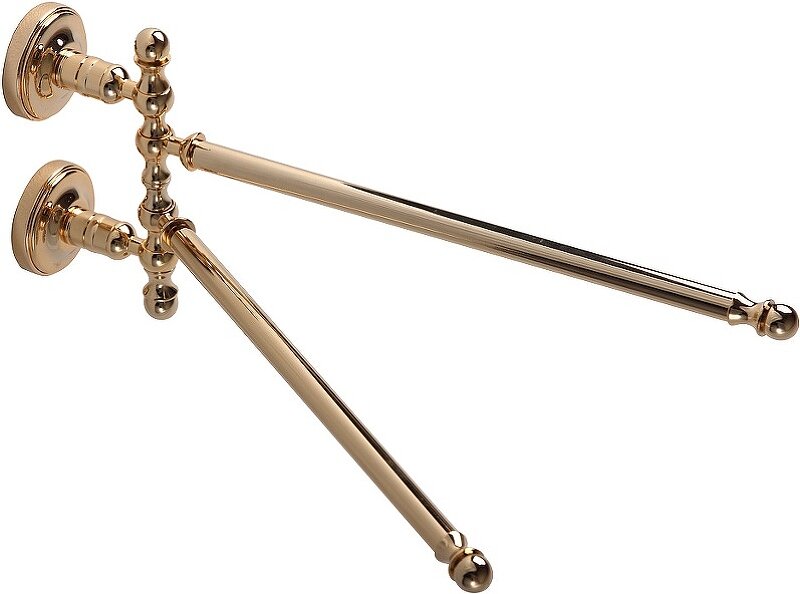 MIRELLA Полотенцедержатель двойной поворотный L34 cм, золото Полотенцедержатель двойной серии MIRELLA бренда MIGLIORE - функциональный аксессуар для ванной комнаты. На данном полотенцедержателе возможно повесить сразу два полотенца среднего размера. Изделие выполнено из латуни и имеет высококачественное хромо-никелиевое покрытие, которое при правильном уходе надолго сохранит свой блеск. Рекомендуется использовать чистящее средство бренда MIGLIORE для смесителей и аксессуаров с хромированным покрытием. Внимание: золотое покрытие очень деликатное и для ухода рекомендуется использовать чистящее средство бренда MIGLIORE для смесителей и аксессуаров с деликатными покрытиями бронза, золото, медь и протирать мягкой ветошью. Материал: Латунь; Оснащение: крепления (шурупы)