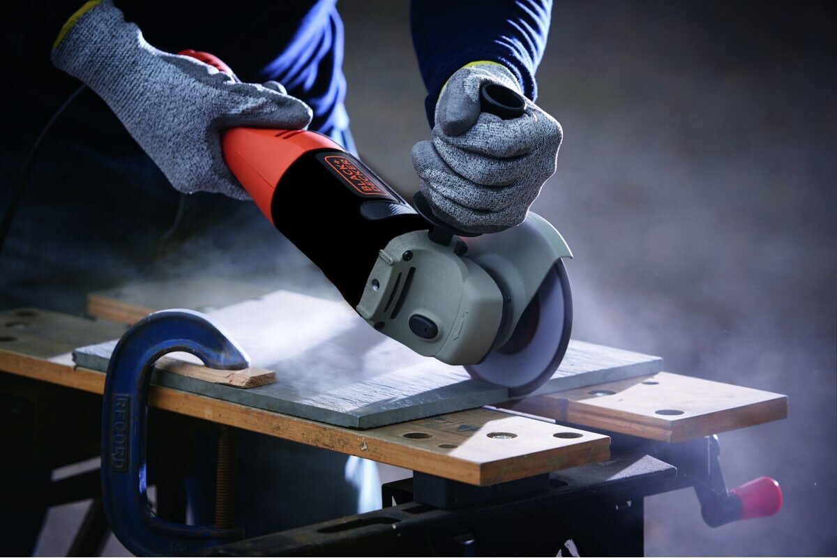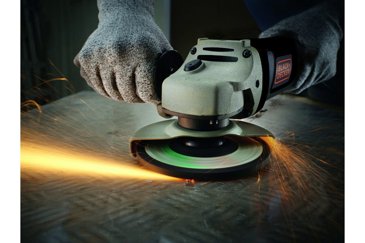 Black&Decker имеет удлиненную рукоятку для большего удобства. Система безопасности продумана до мелочей. Кроме металлического кожуха, который оберегает от искр, предусмотрен расцепитель нулевого напряжения. Он позволяет предотвратить случайный запуск, что привело бы к получению травм. Воздушное охлаждение увеличивает цикл использования. Плавный пуск исключает рывки и повреждение обрабатываемого материала. Трехпозиционная боковая рукоятка предоставляет дополнительный хват и увеличивает маневренность. Black&Decker будет полезна там, где необходима большая мощность. Инструмент актуален при укладке тротуарной плитке или монтаже металлических конструкций.