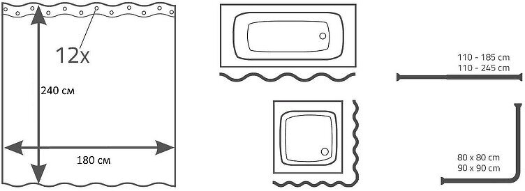 | Тип товара | Шторки для ванны |