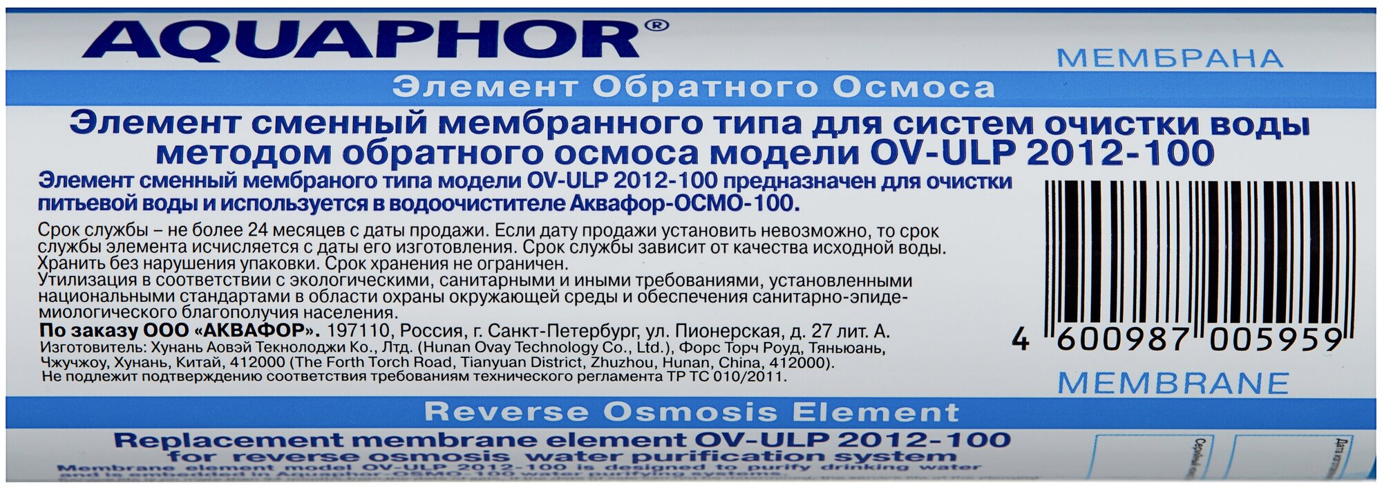 | Подходит только для | фильтров Аквафор Осмо 100 |