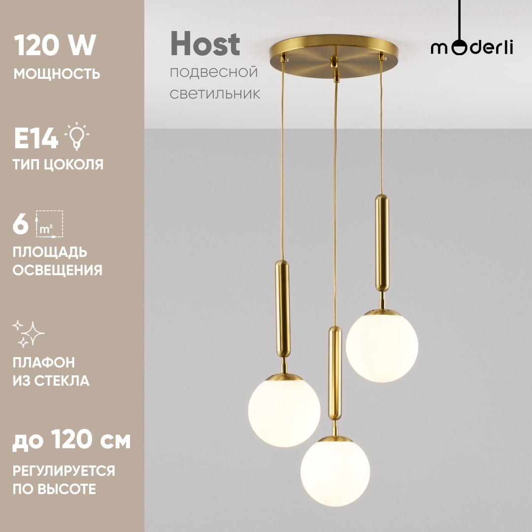Подвесной светильник Host - продукт известной компании Moderli (Италия). Имеет максимальную мощность 120 Вт, освещает площадь до 6 кв. м. Отлично подойдет для таких мест, как гостиная, кухня, офис. Впишется в интерьеры следующих стилей: современный.