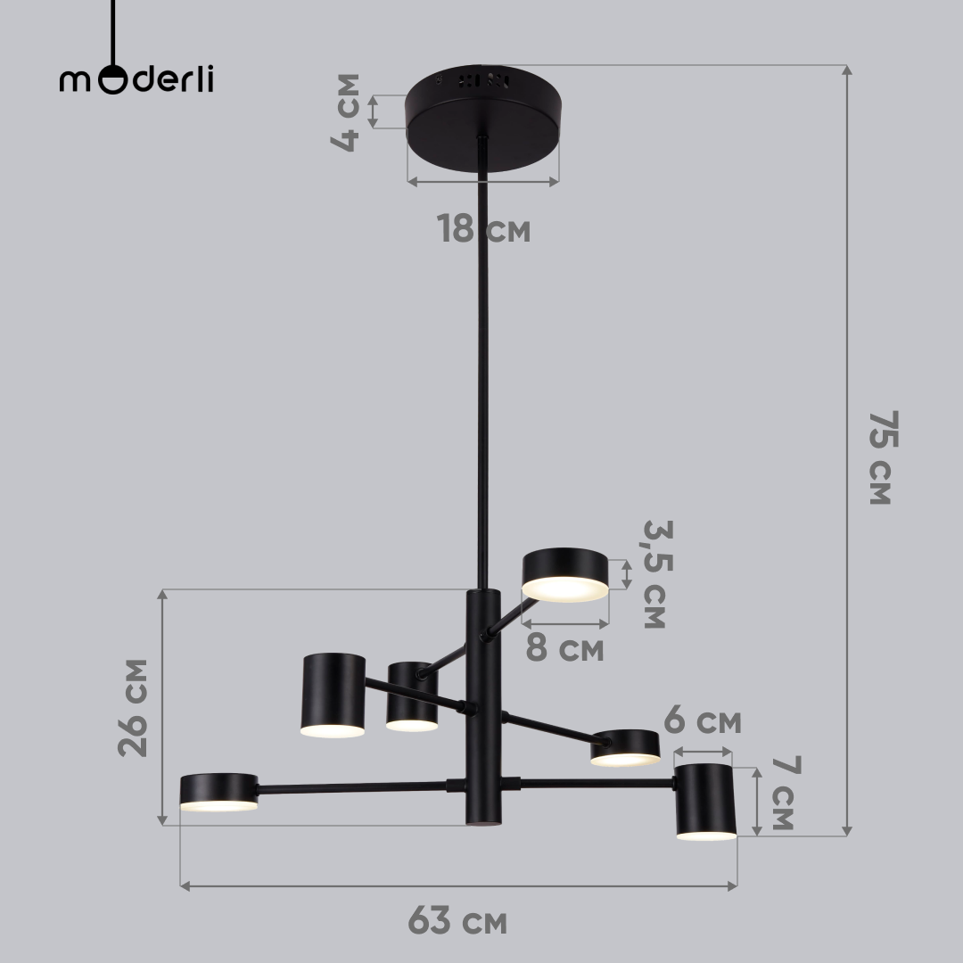 Потолочная люстра светодиодная Lewes - продукт известной компании Moderli (Италия). Имеет максимальную мощность 30 Вт, освещает площадь до 10 кв. м. Отлично подойдет для таких мест, как гостиная, кухня, кабинет, офис. Впишется в интерьеры следующих стилей: хай-тек.