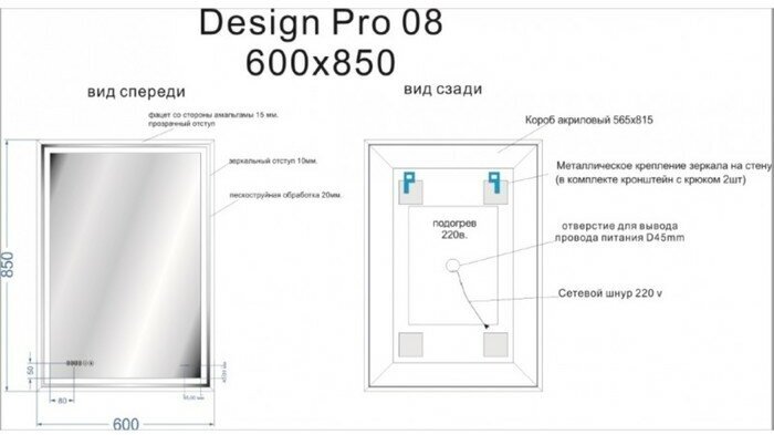 | Комплектация | зеркало с подсветкой, комплект креплений, инструкция, гарантийный талон |