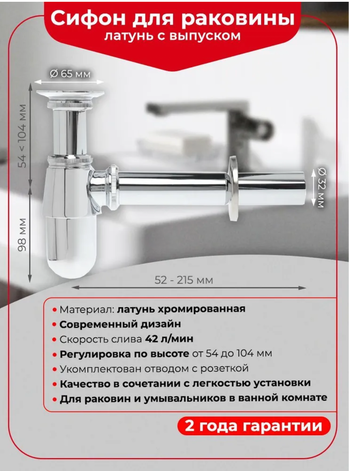 | ВКоробке | Сифон - 1 шт. Пробка - 1 шт. Инструкция - 1 шт. |