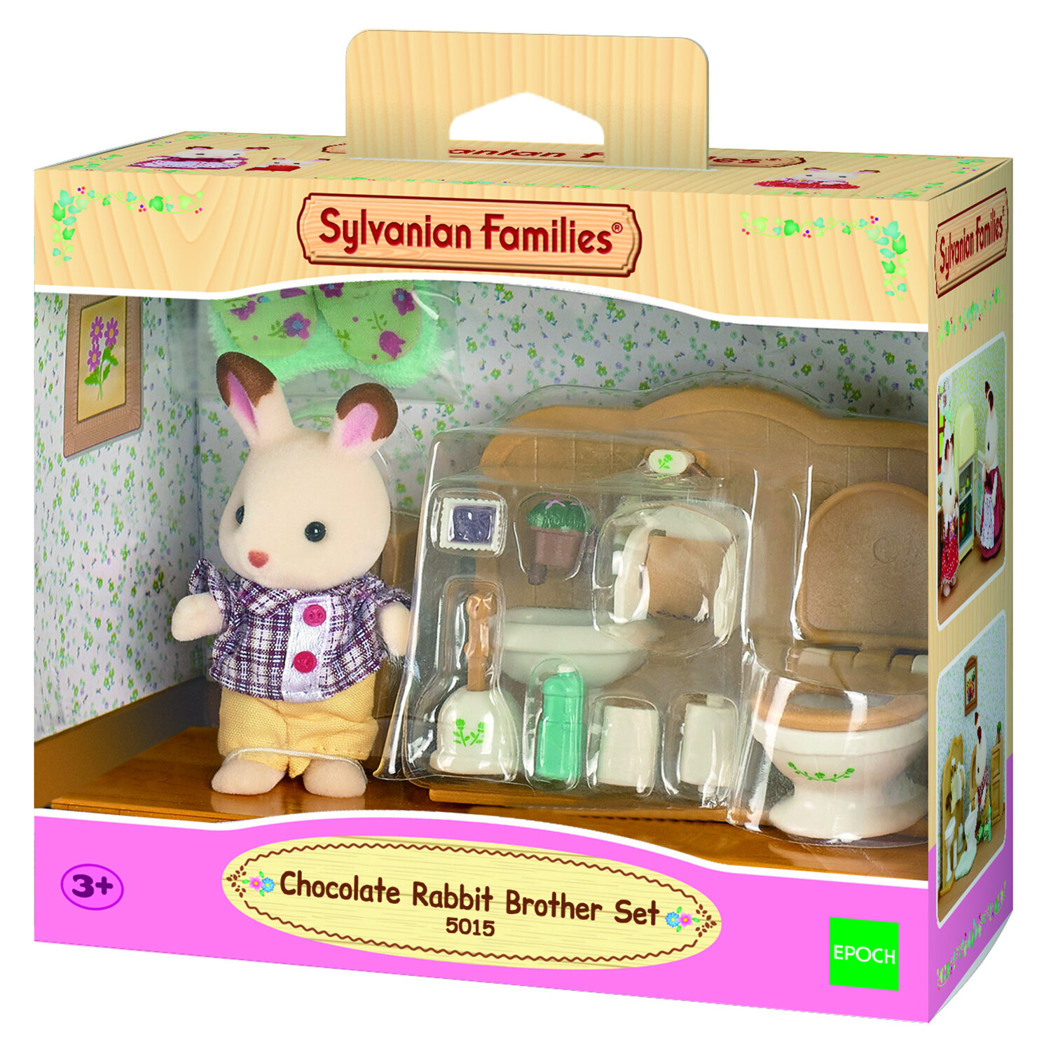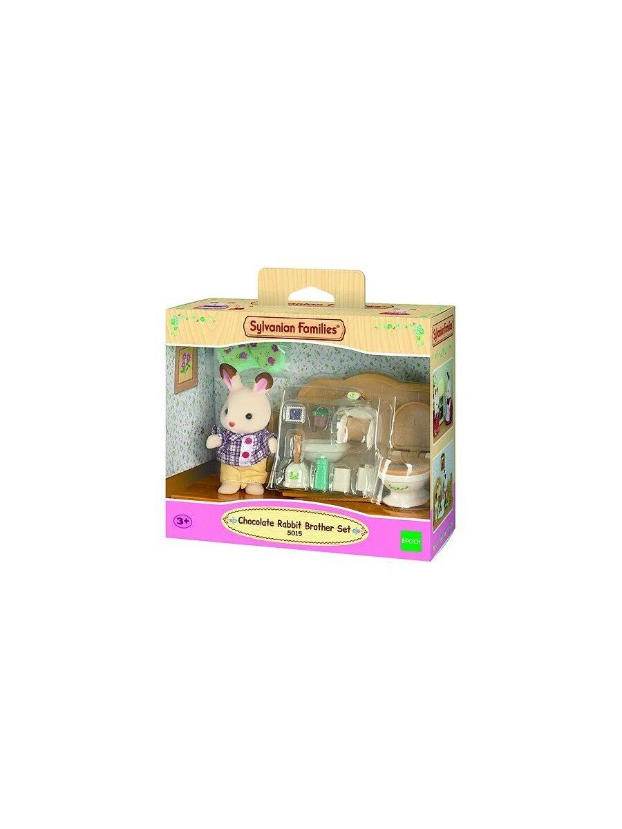 Игровой набор «Братик и туалетная комната» Sylvanian Families 2203включает фигурку кролика белого цвета с коричневыми пятнышками, выполненную из бархатистого материала, приятного на ощупь, умывальник, унитаз, тумбочку и различных аксессуаров для ванной комнаты. Кролик одет в бежевые штанишки и рубашку в клеточку с пуговками. Одежда застёгивается на липучку легко снимается. У фигурки двигаются все лапки, поворачивается голова.