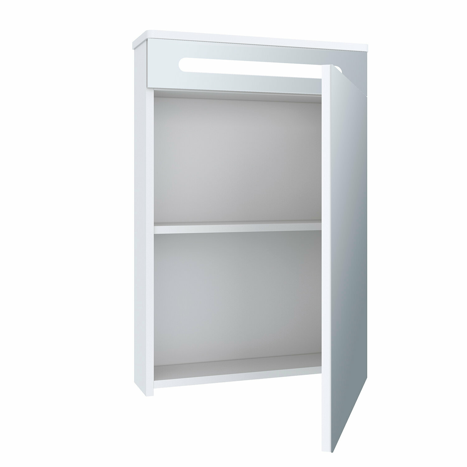 | Дополнительная информация | Зеркальный шкаф со встроенной сверху люминесцентной подсветкой и с распашной зеркальной дверкой. Блок розетка/выключатель расположен внутри шкафа. Петли со встроенным доводчиком. Выпускается только в правом исполнении. |