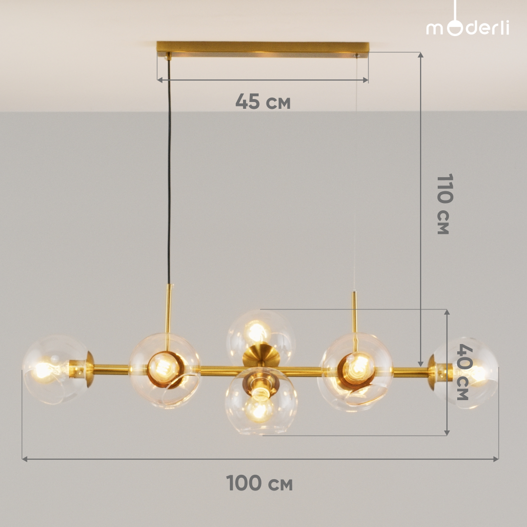Подвесной светильник Long - продукт известной компании Moderli (Италия). Имеет максимальную мощность 480 Вт, освещает площадь до 16 кв. м. Отлично подойдет для таких мест, как гостиная, кухня, над обеденным столом, кабинет, офис. Впишется в интерьеры следующих стилей: модерн.