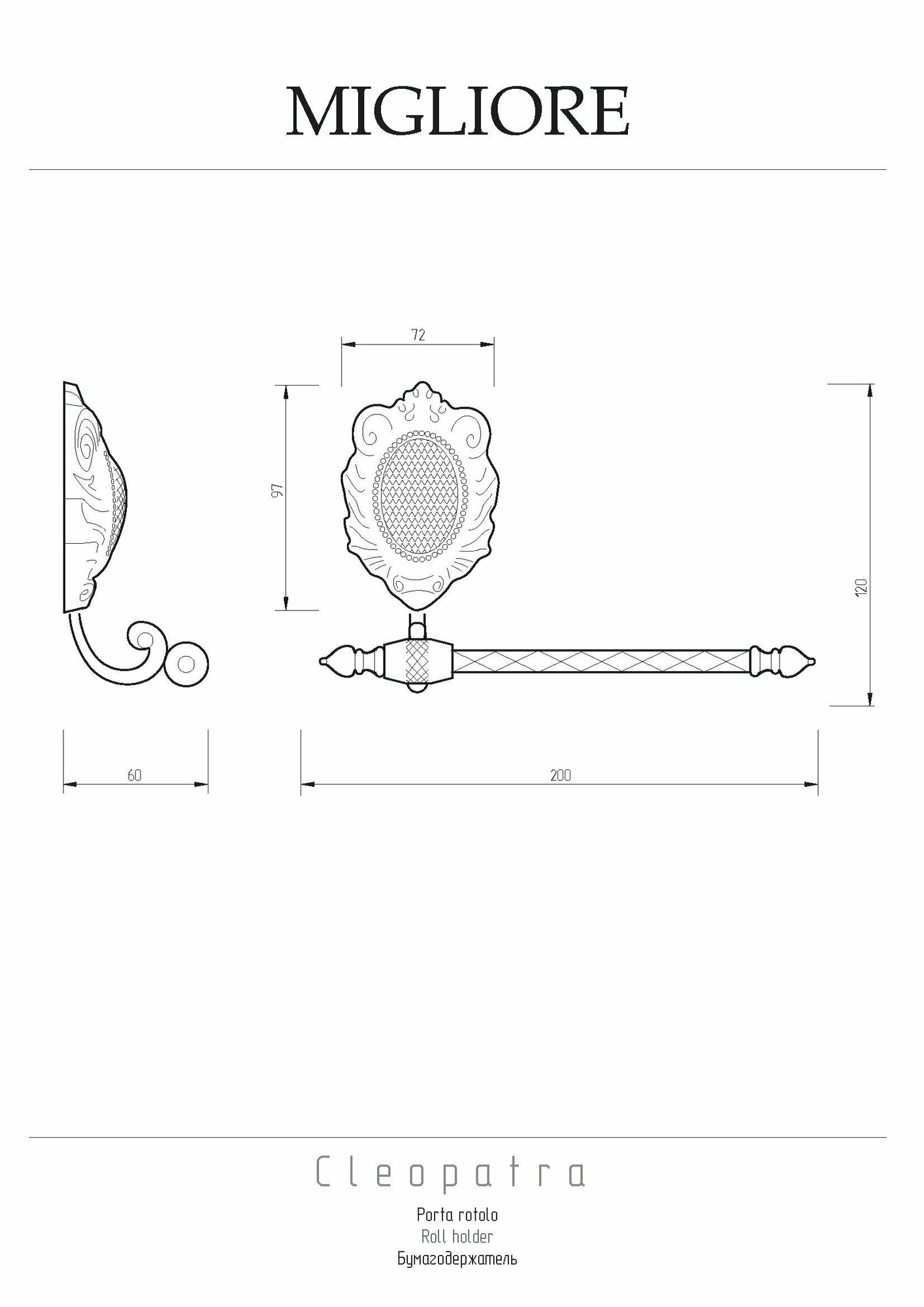 Держатель туалетной бумаги Migliore Cleopatra хром не только функциональный предмет интерьера ванной комнаты, но восхитительное эргономичное дополнение дизайна, как небольшого, так и крупного помещения. Коллекция Cleopatra выполнена в эксклюзивном дизайнерском решении в лучших традициях стиля ретро.
