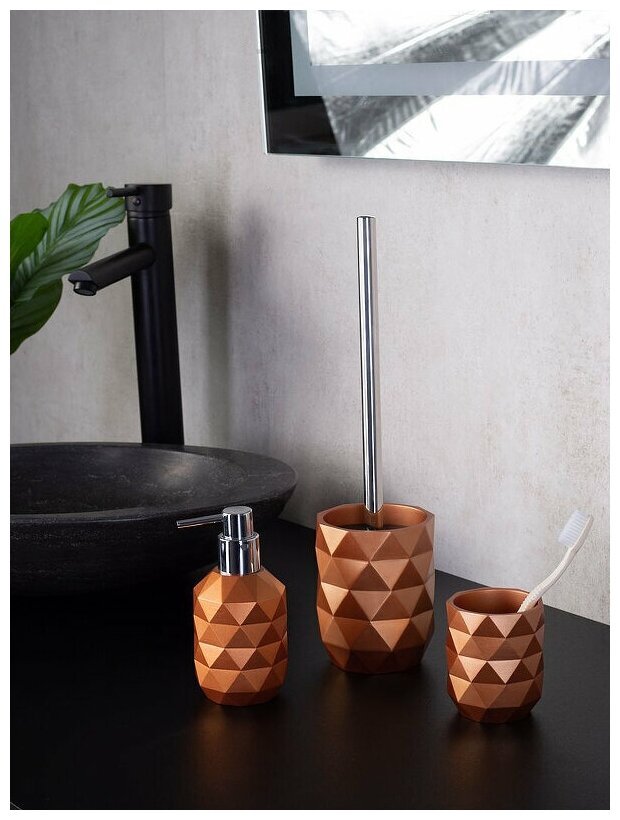 Изделие выполнено из высококачественного полирезина. Стаканчик предназначен для хранения пасты, зубных щёток и косметических аксессуаров.