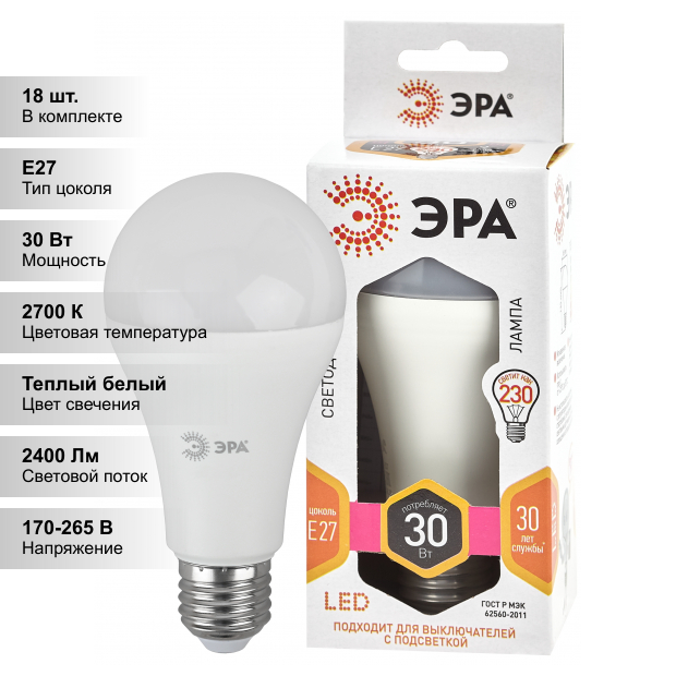 Сервис сравнения цен СкидкаГИД предлагает сравнить цены на товар «Лампа светодиодная ЭРА E27 30W 6000K матовая Б0048017 LED A65-30W-860-E27»