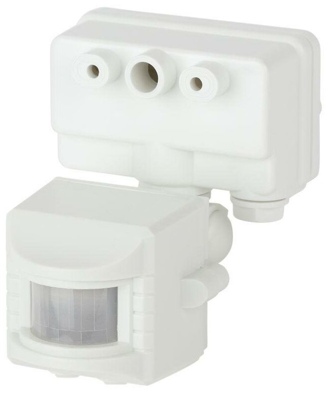 **Датчик прожекторный Эра** обнаруживает любое движение на расстоянии от 5 м. Он с легкостью фиксируется на прожекторе и обладает повышенной устойчивостью. Модель предназначена для автовключения и выключения ламп, фонарей, гирлянды внутри или снаружи помещений: коттеджа, гостиничного комплекса, дачного участка. Ее также можно установить в малоосвещенных помещениях, на производстве, складе. Датчик улавливает движения автоматически и моментально включает свет. Модель работает при мощности 1200 Вт, обеспечивая яркое и насыщенное свечение. Она способна регулировать время задержки выключения до 6-7 минут. У прожекторного датчика есть программируемые настройки, которые меняют чувствительность устройства к внешнему свету. Данная опция существенно снижает потребление электричества и расходы на электроэнергию. Модель обладает прочной конструкцией из ударопрочного пластика. Корпус получил защиту класса IP44 от влаги и пыли. Он хорошо противостоит воздействию внешних негативных факторов (осадков, ультрафиолета, механических повреждений). Белый корпус органично вписывается в любой интерьер или экстерьер домов.