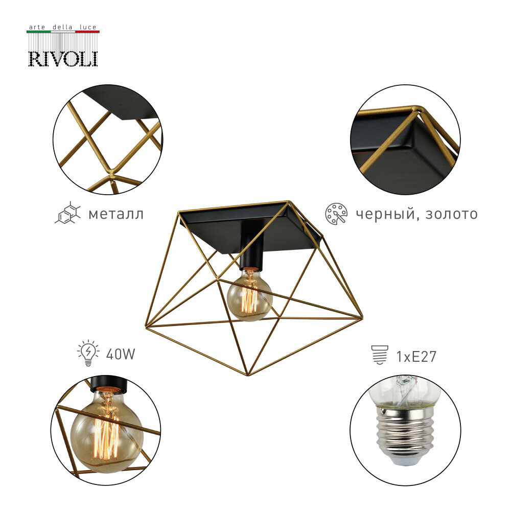 Светильник потолочный Roxana 1 х Е27 40 Вт - продукт известной компании Rivoli (Италия). Имеет максимальную мощность 40 Вт, освещает площадь до 3 кв. м. Отлично подойдет для таких мест, как гостиная, прихожая и коридор, спальня, кухня, кабинет, офис. Впишется в интерьеры следующих стилей: лофт, минимализм.