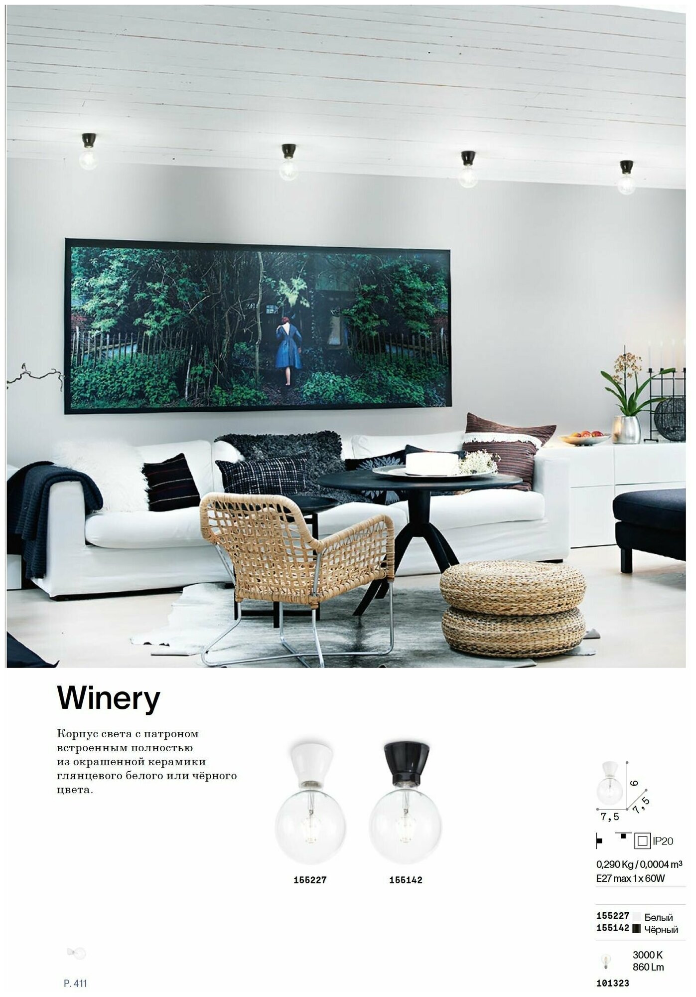 Светильник представляет оригинальную линейку производителя выполненную в стилевом решении Современный. Модель прекрасно впишется в дизайн интерьера и станет ключевым элементом световой композиции. Характеристики, качество материалов полностью соответствуют Европейским стандартам и требованиям центра сертификации Ростест: стандартный цоколь E27, мощностью лампочки 60 W, совместимый с типом лампы: Накаливания. В производстве корпуса, плафонов, декоративных элементов изделия использованы: Керамика, . Цветовая основа металлических компонентов — Белый, . Потолочный светильник Ideal Lux 155227 из серии Winery идеальна Для прихожей кв. м или помещения примерно соответствующего этому размеру. Степень пылевлагозащиты — IP20. Наш интернет-магазин поставляет представленный товар в фирменной брендовой упаковке, инструкцией по сборке на русском языке и необходимыми деталями для успешной установки на потолок. Приобретая осветительный прибор в MoscowSvet Вы получите расширенную эксклюзивную гарантию 2 года и самую низкую цену 2260 рублей.