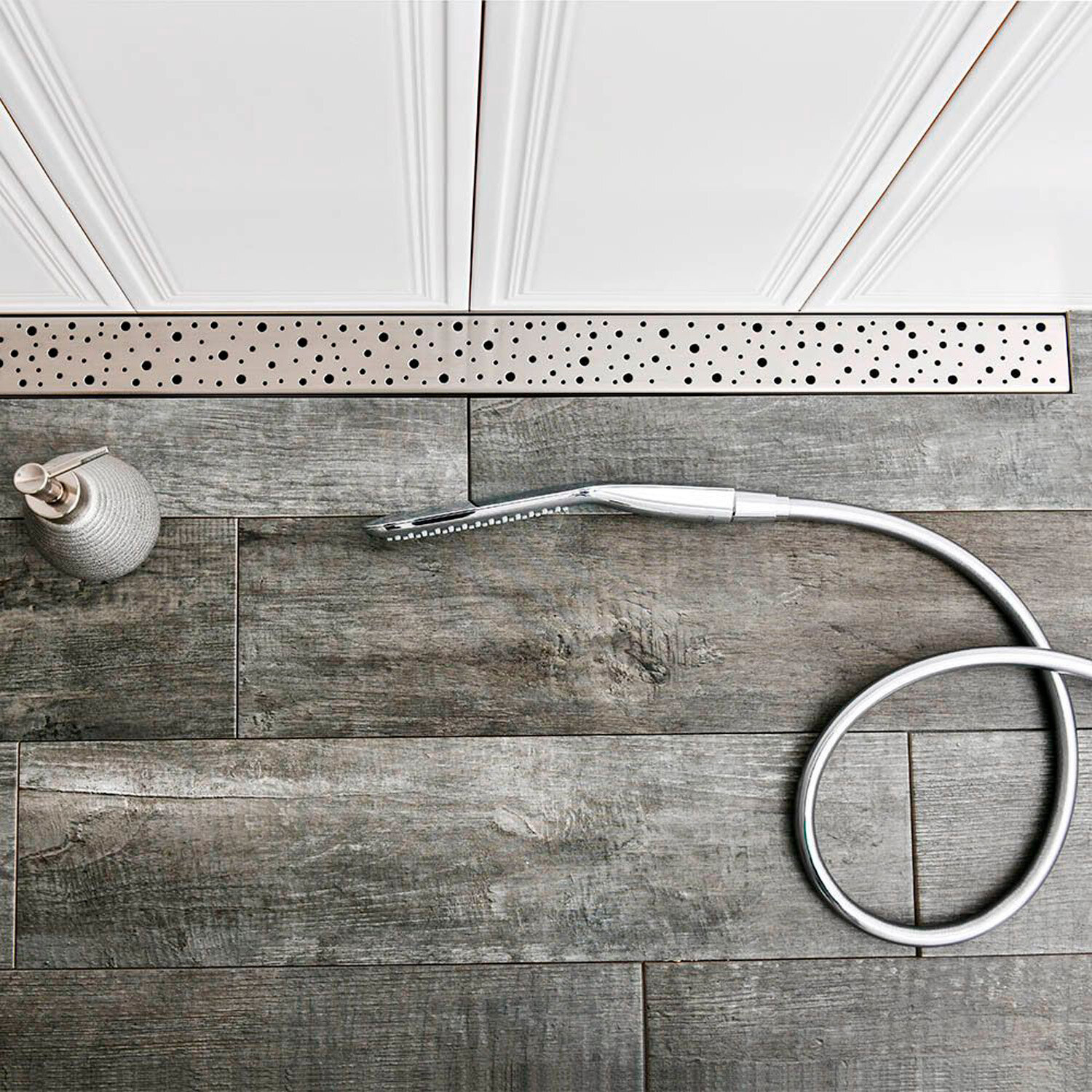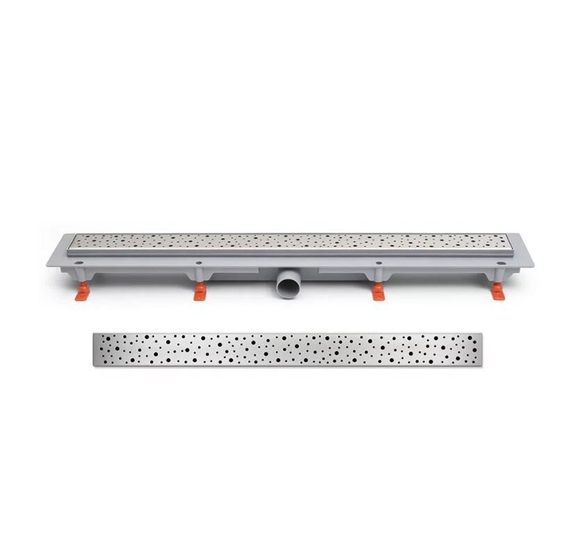 Душевой лоток . Комбинированный противозапаховый (гидрозатвор + сухой затвор). Решетка в комплекте. Материал решетки нержавеющая сталь, толщина 1,5 мм. Сетка для сбора грязи в комплекте