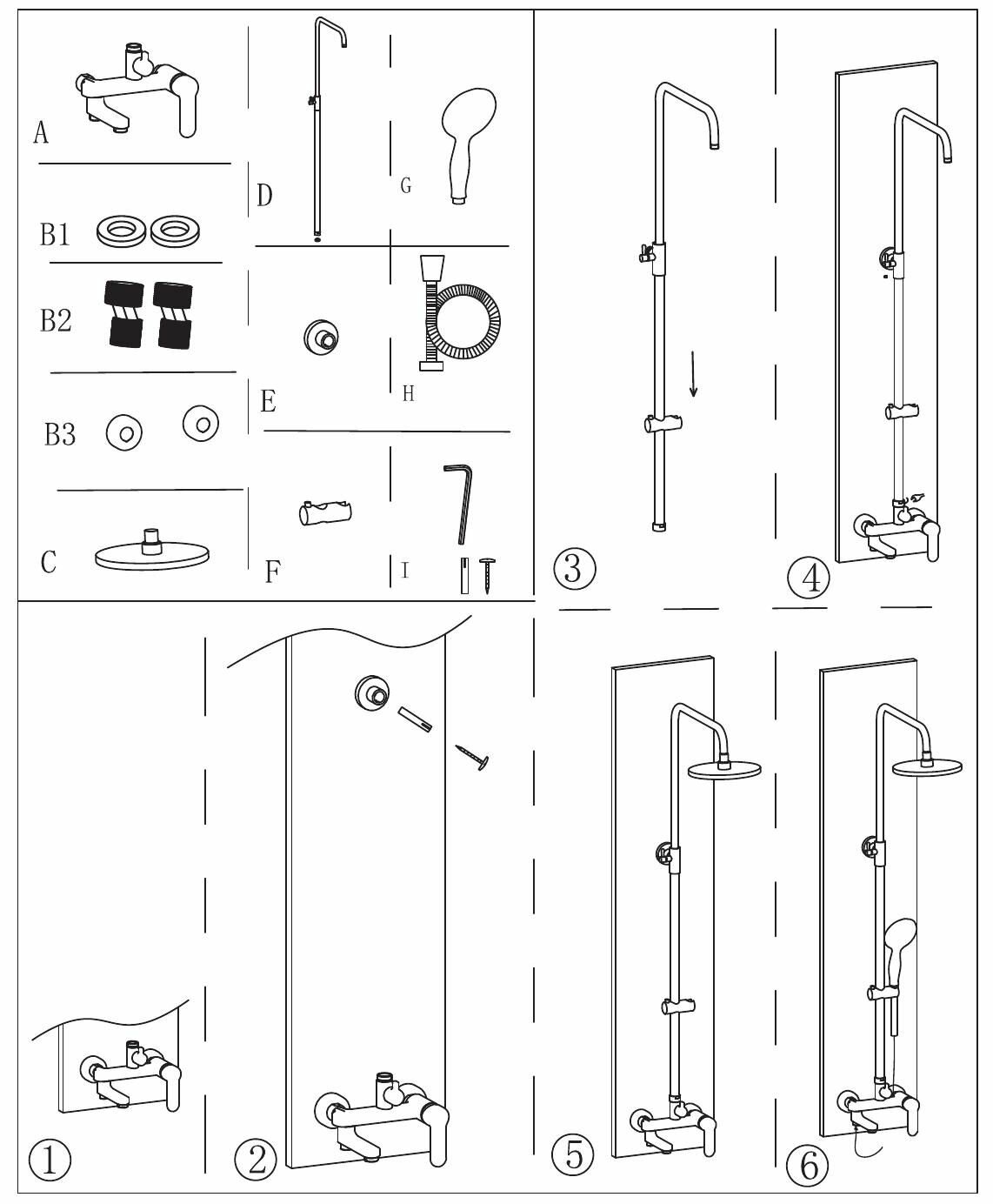| ВКоробке | Душевая стойка - 1 шт. Верхний душ - 1 шт. Лейка - 1 шт. Держатель для душа - 1 шт. Шланг - 1 шт. Смеситель - 1 шт. Инструкция - 1 шт. |