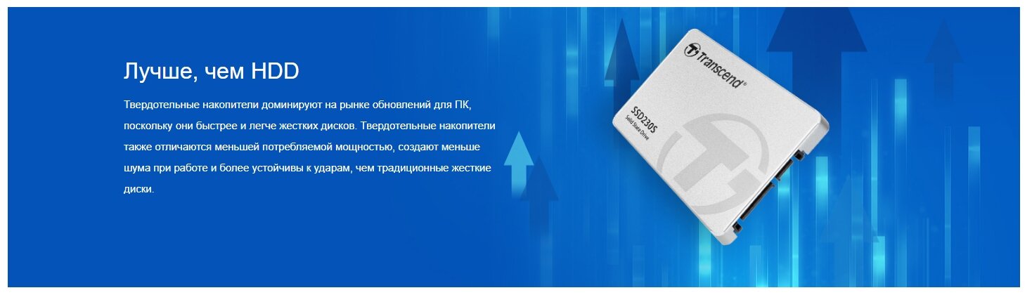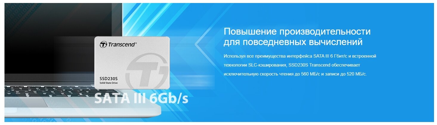 Твердотельный накопитель Transcend SSD230 с интерфейсом SATA III 6 Гбит/с создан на базе самой современной 3D-технологии производства памяти NAND, которая позволяет размещать ячейки памяти в несколько слоев – одна над другой. За счет использования высококачественных микросхем флэш-памяти и усовершенствованных алгоритмов работы прошивки накопители SSD230 обеспечивают высокую надежность хранения данных.3D-технологии раздвигают пределы возможного. В отличие от прежних, плоских по своей структуре микросхем NAND, ячейки флэш-чипы 3D NAND располагаются в нескольких плоскостях и могут находится одна над другой. Технология 3D NAND призвана преодолеть существующие ограничения плотности размещения ячеек флэш-памяти, а также повысить уровень производительности и долговечности этого типа памяти. Производительность накопителя. Transcend SSD230 оснащен кэшем на базе микросхем памяти DDR3 и демонстрирует потрясающую производительность при выполнении операций произвольного считывания и записи блоков размером 4 КБ, которая достигает 340 МБ/с. Он позволит в считанные секунды загружать в память компьютера программы и файлы, что делает этот накопитель прекрасным выбором для размещения загрузочного раздела ОС. Благодаря использованию интерфейса SATA III 6 Гбит/с и применению технологии SLC-кэширования, накопители SSD230 осуществляют чтение и запись данных на скоростях вплоть до 560 МБ/с и 520 МБ/с, соответственно. Долговечность. Надежность. Накопители SSD230 не только отличаются высокой производительностью, но и поддерживают технологии RAID, LDPC (Low-Density Parity Check), а также обладают эффективным механизмом выявления и исправления ошибок ECC, которые помогают обеспечить надежность хранения ваших данных. Наличие встроенной поддержки алгоритмов снижения износа ячеек позволяет обеспечить целостность данных, а также продлить срок эксплуатации накопителя. Ультратонкий, ультрапортативный. Накопители SSD230 выполнены в стандартном 2,5-дюймовом форм-факторе. Их толщина составляет всего 6,8 мм, а вес – лишь 63 г, что делает их прекрасным выбором для установки не только в классические ПК, но и в ультратонкие вычислительные устройства, такие как ультрабуки.