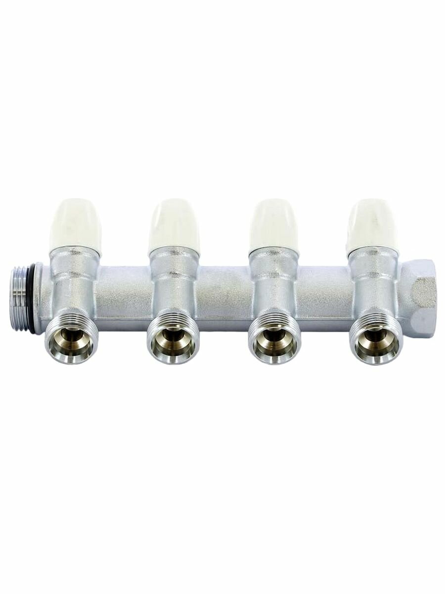 Коллектор Tiemme Maxima НВ, 3/4", с вентилями, 4 выхода, 1/2" Н 36 мм, хром