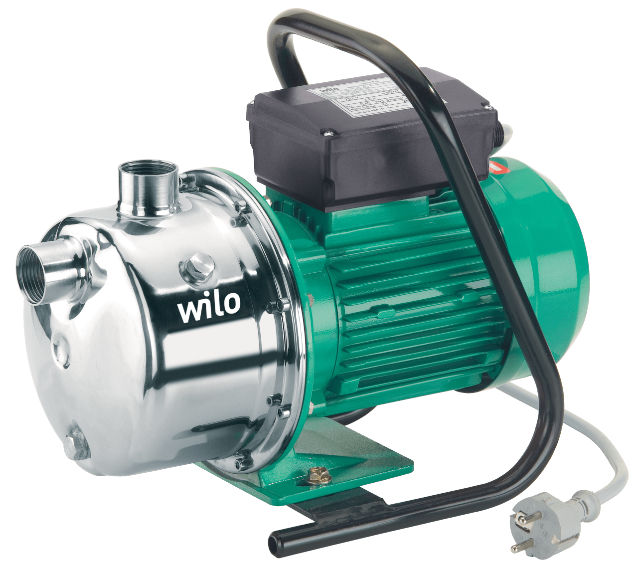 Переносной самовсасывающий одноступенчатый горизонтальный струйный насос для перекачивания воды в режиме всасывания и подвода. Напрямую присоединенный фланцами электродвигатель однофазного или трехфазного тока; в исполнении для однофазного тока со встроенным термическим защитным выключателем электродвигателя и конденсатором, а также отдельным выключателем ВКЛ./выкл. Насос готов к подключению и включает в себя несущую раму и соединительный кабель длиной 2 м со штекером с защитным контактом; идеально подходит для переносной эксплуатации в саду или для различных увлечений. В исполнении для трехфазного тока подключение выполняется через клеммную коробку.Все детали, находящиеся в контакте с перекачиваемой средой, не подвержены коррозии. Описание серии Тип Самовсасывающие одноступенчатые центробежные насосы Применение Перекачивание воды из колодцев наполнение жидкостью, опорожнение, перекачивание жидкости, орошение и полив водой В качестве аварийного насоса при затоплении Обозначение Пример: WJ-203-X-EM WJ Насосы Wilo-Jet 2 Номинальная подача Q в м³/ч при оптимальном коэффициенте полезного действия 03 Индекс для давления насоса Исполнение 03 с более высоким давлением, чем исполнение 02 (без указания на количество рабочих колес!) X Исполнение без несущей рамы без обозначения Мобильное исполнение с несущей рамой EM Однофазное исполнение, 1~230 В 50 Гц DM Трехфазное подключение, 3~230/400 В, 50 Гц
