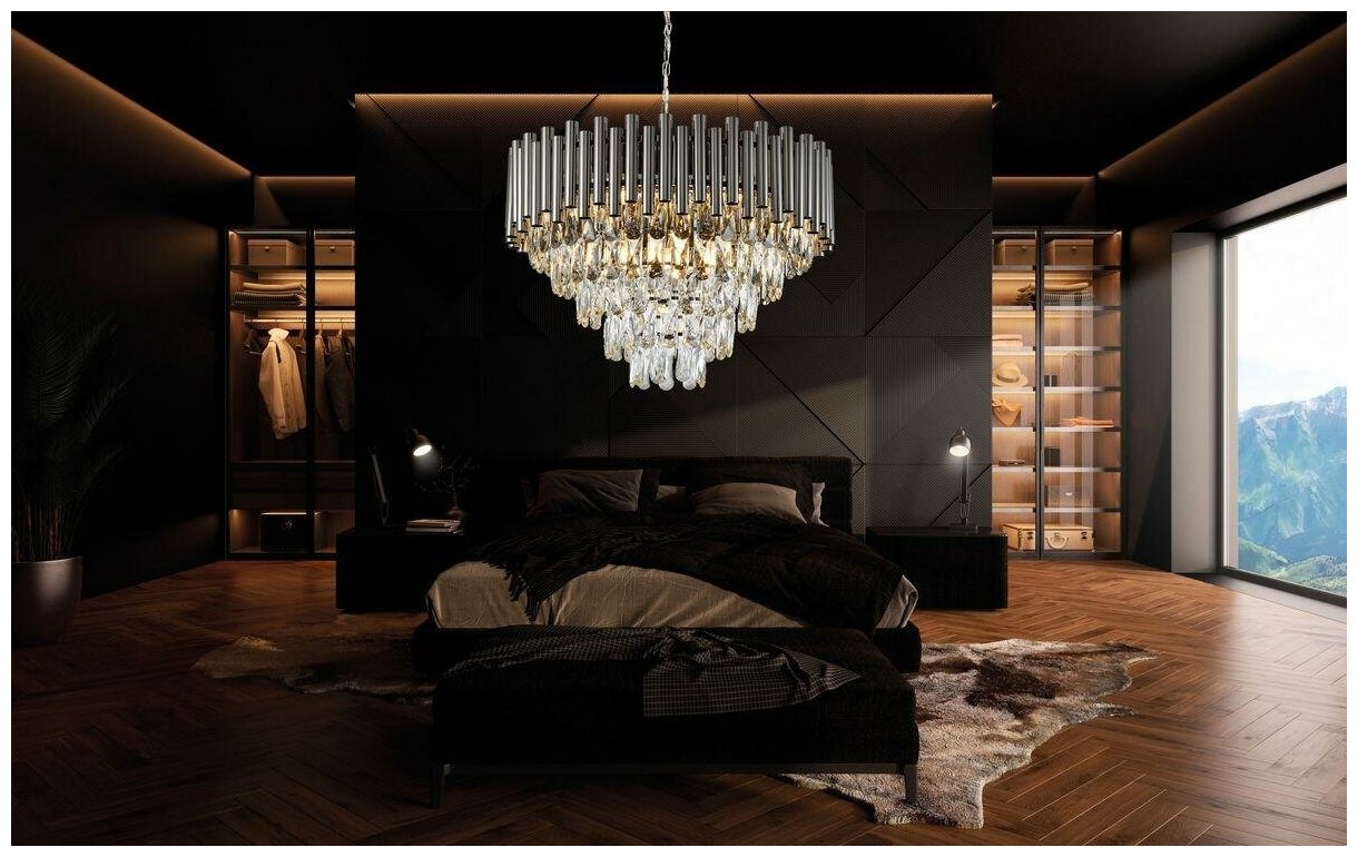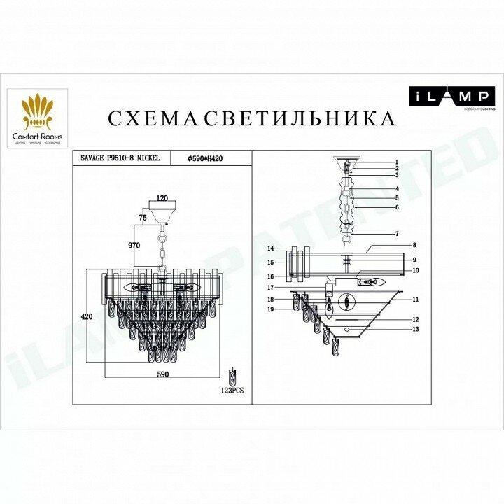Подвесная люстра хрустальная Savage - продукт известной компании iLamp (Россия). Имеет максимальную мощность 320 Вт, освещает площадь до 16 кв. м. Отлично подойдет для таких мест, как гостиная, спальня, кухня, кабинет. Впишется в интерьеры следующих стилей: модерн.
