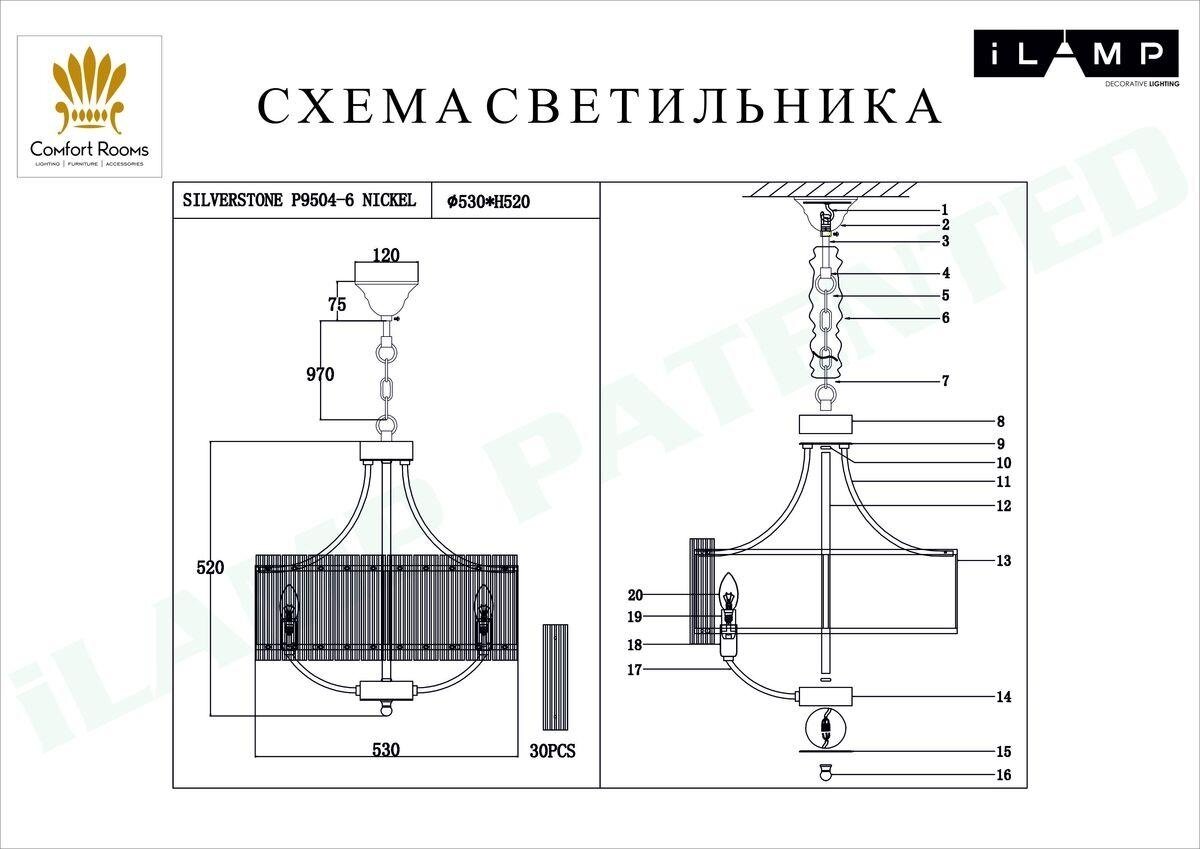 Подвесная люстра iLamp Silverstone P9504-6 NIC