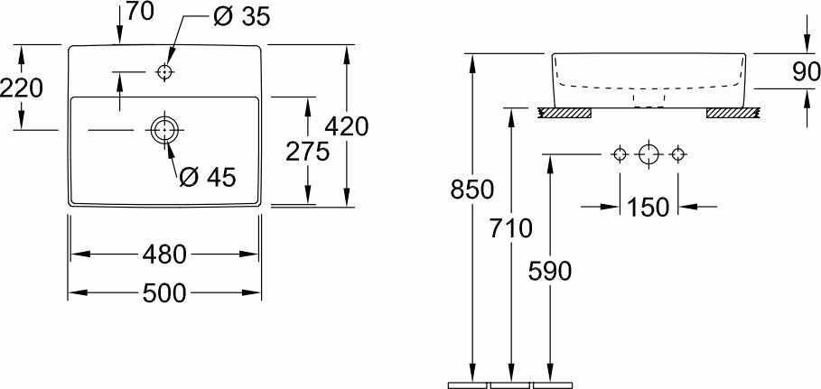 | Высота раковины | 90.000 |