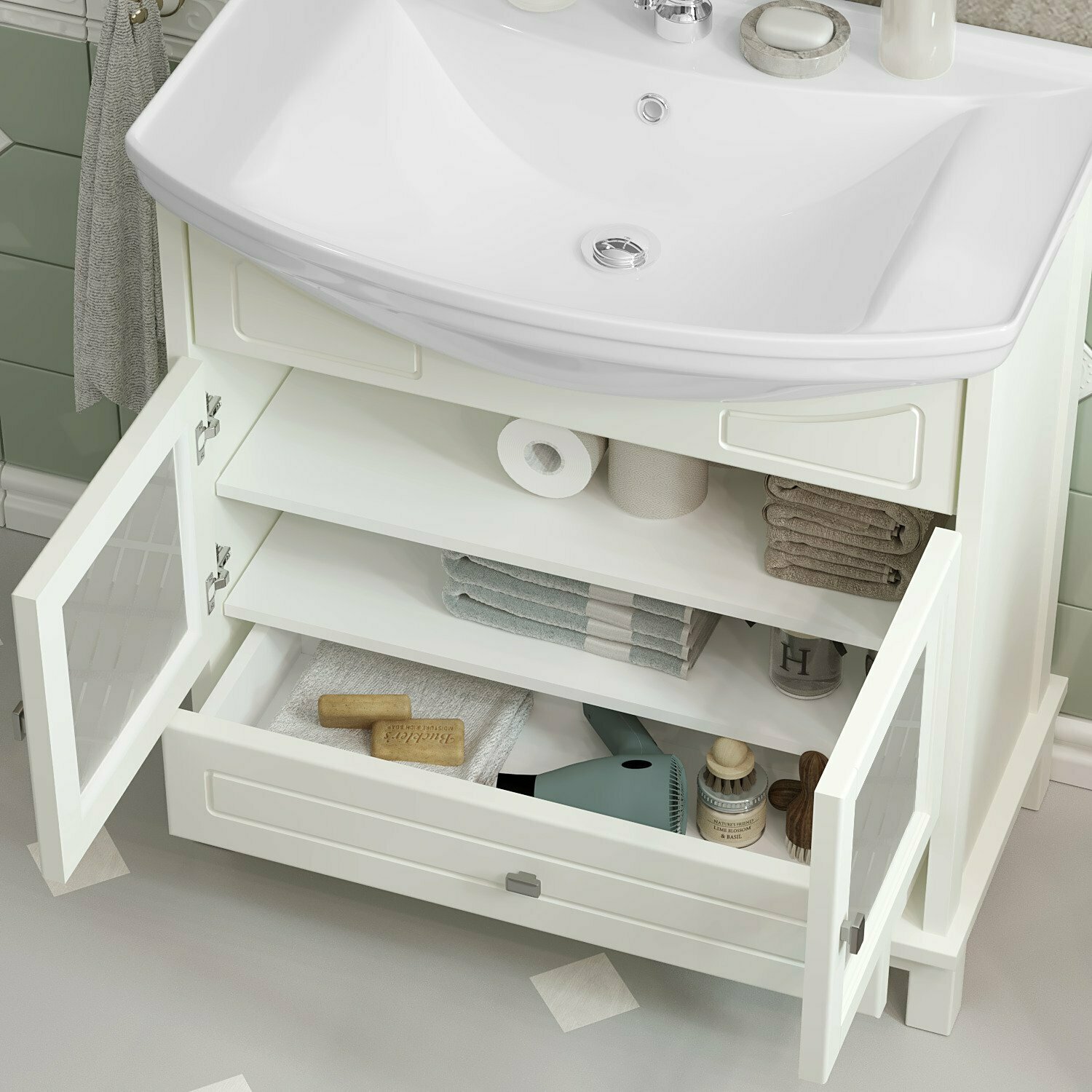 Тумба без раковины Омега 75, цвет 1013 - слоновая кость (раковина Стиль 75). Не забудьте заказать раковину, зеркало, пенал (смотрите дополнительную комплектацию и опции)