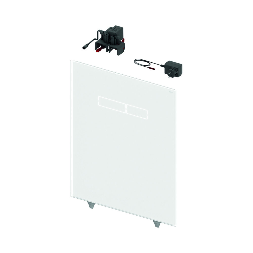 | Комплектация | стеклянная панель с сенсорными клавишами смыва, электропривод смыва, блок питания 230 В, инструкция по установке, инструкция по программированию |
