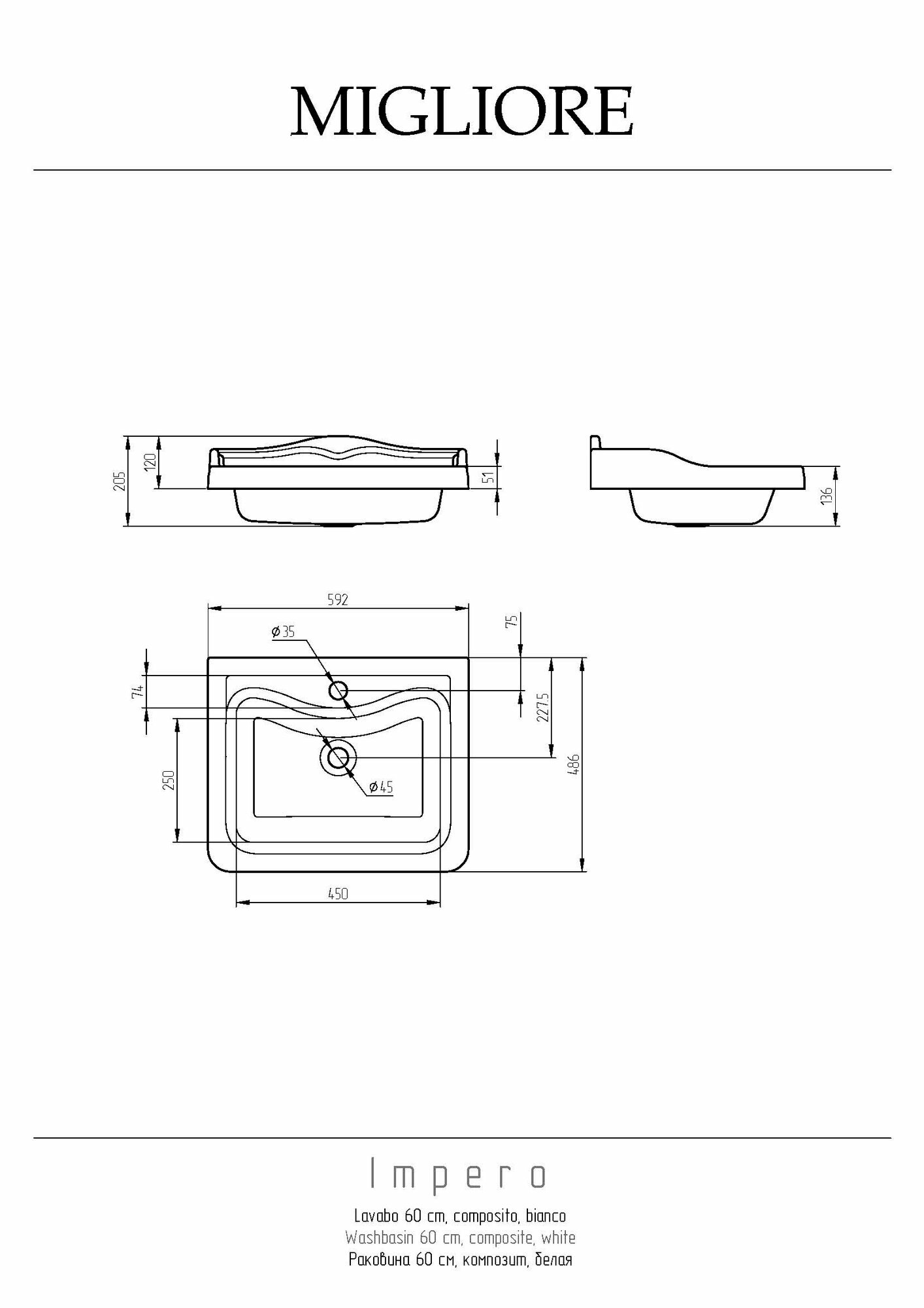 Раковина Migliore Impero 60 .
