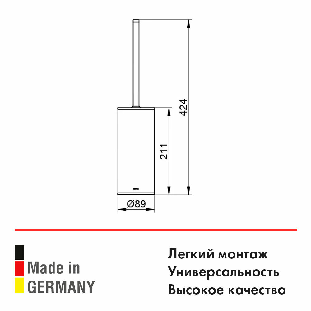 Keuco предлагает безупречное, сочетание материалов (латунь, пластик) высокого качества, с абсолютным отсутствием вредных для здоровья веществ. Хром, основной цвет исполнения Keuco Universal, безупречно впишется в любой дизайн проект. Важные размеры товара: ширина 8.9 см, глубина 8.9 см, высота 42.4 см. Круглая форма прослеживается во всех линиях и придает аксессуару неповторимый стиль. Ершик размещается в удобном положении на полу благодаря напольному способу установки. Закрытая конструкция скроет все не нужное от посторонних глаз за декоративными элементами.
