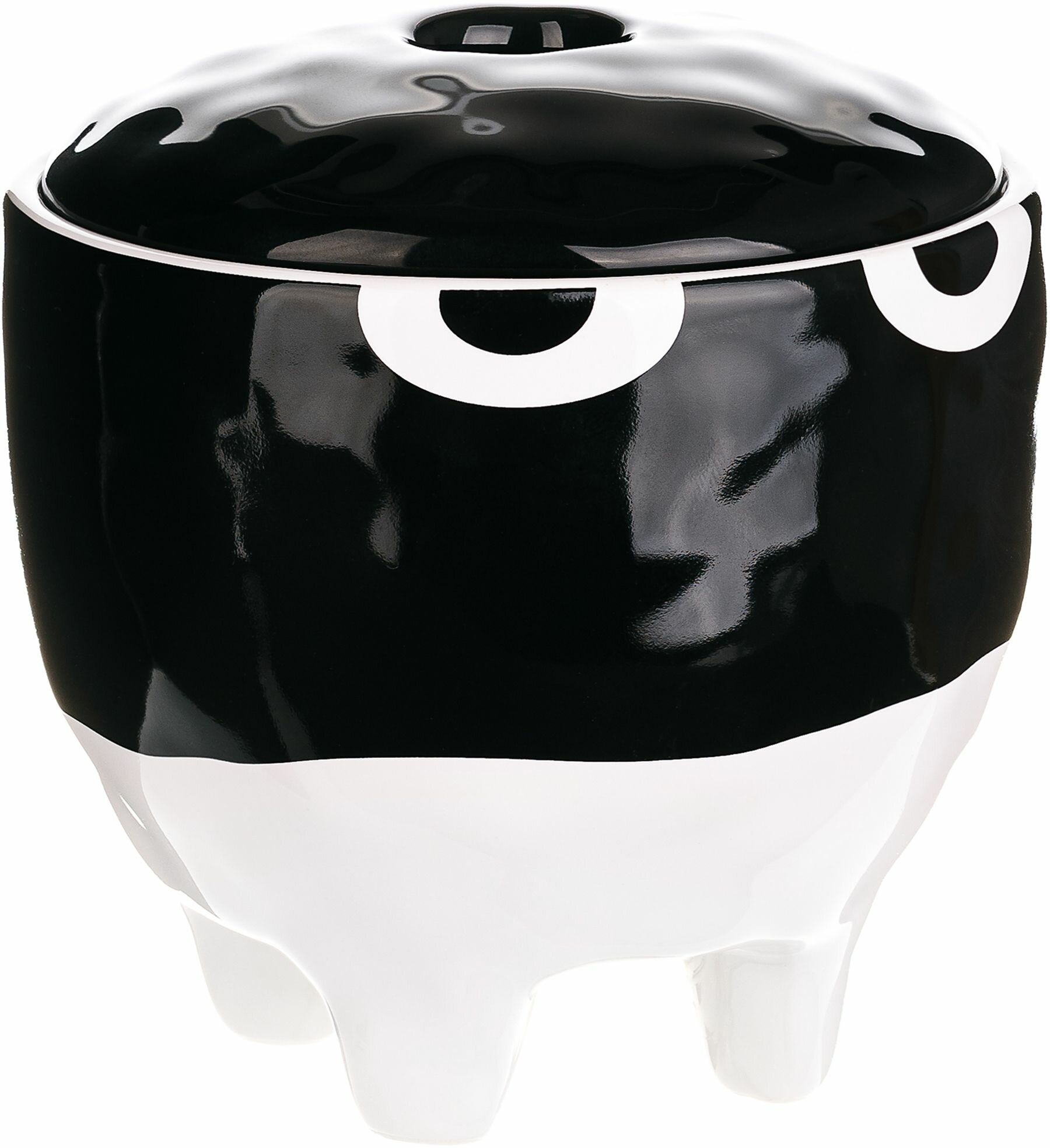 Керамическая шкатулкас крышкой 10х10х9,5 см. Объем 0,35 л делает изделие подходящим местом хранения для небольших предметов, аксессуаров, швейных принадлежностей. Ножки обеспечивают устойчивость шкатулки и удобство ее использования. Яркий, необычный дизайн делает шкатулку "с глазами" оригинальным предметом интерьера.
