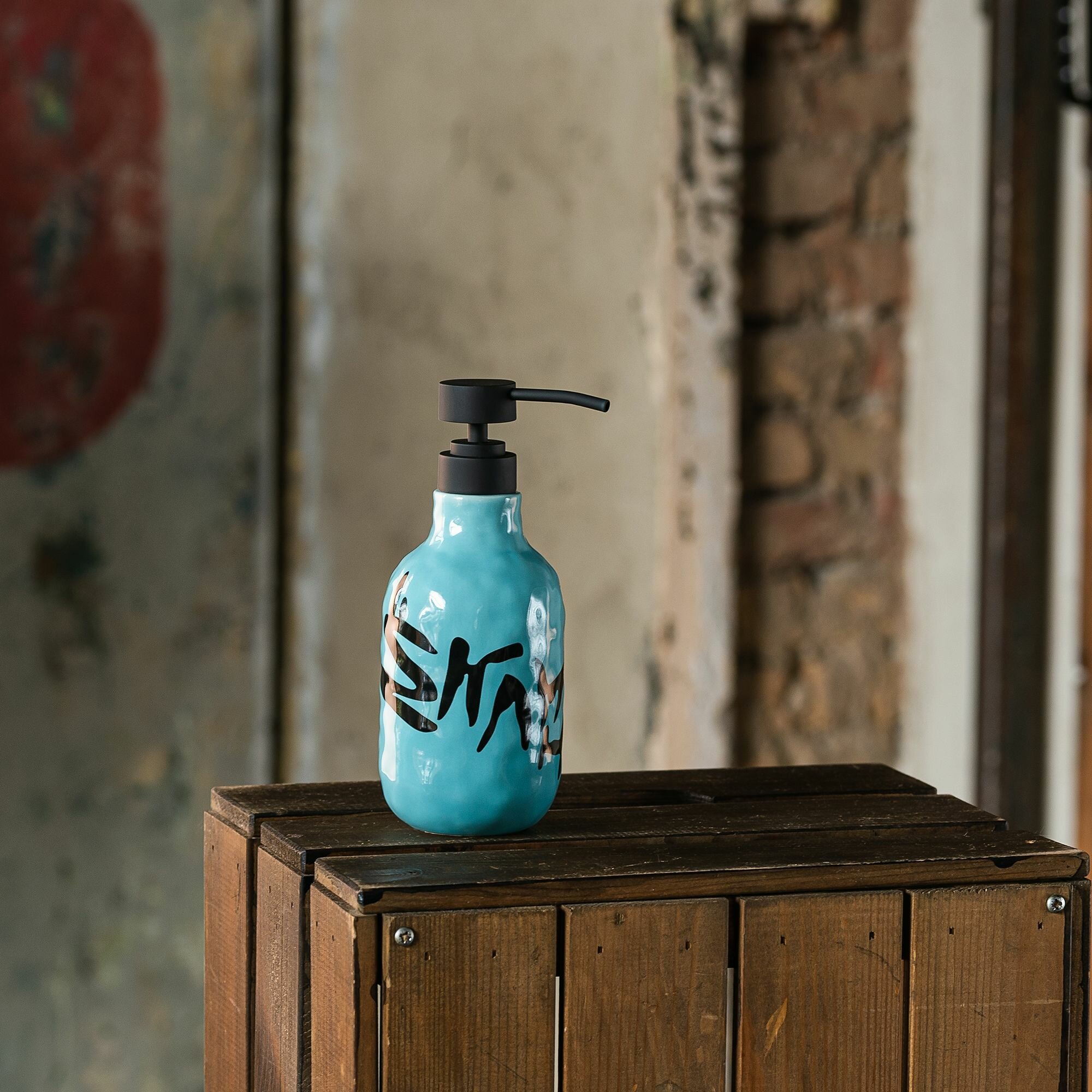 Керамический дозатор для жидкого мыла объемом 0,4 л. Дозатор с носиком удобен в использовании, подходит не только для жидкого мыла, но и шампуней, геля для душа. Привлекательный дизайн и цветовое оформление делают изделие оригинальной деталью интерьера.
