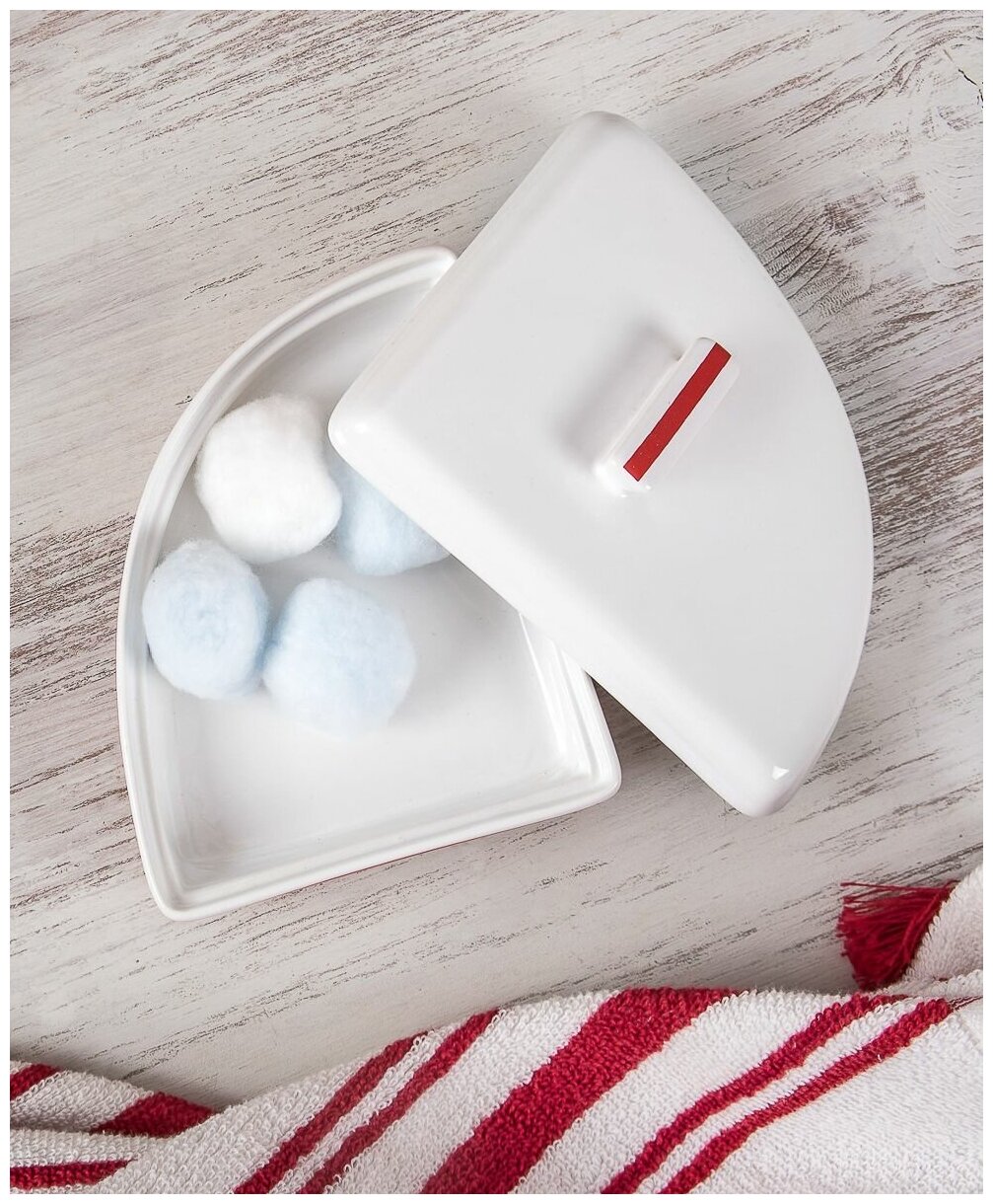 Бренд Moroshka в своей продукции использует идеальное, сочетание материалов (керамика) высокого качества, с полным отсутствием вредных для здоровья веществ. Белый, основной цвет исполнения Moroshka Maritime, отлично подходящий большинству дизайнерских решений. Важные размеры товара: ширина 15 см, глубина 12.3 см, высота 6 см. Округлая форма прослеживается во всех линиях и придает аксессуару неповторимый стиль. Контейнер размещается в особо удобном положении на столе благодаря настольному способу установки.