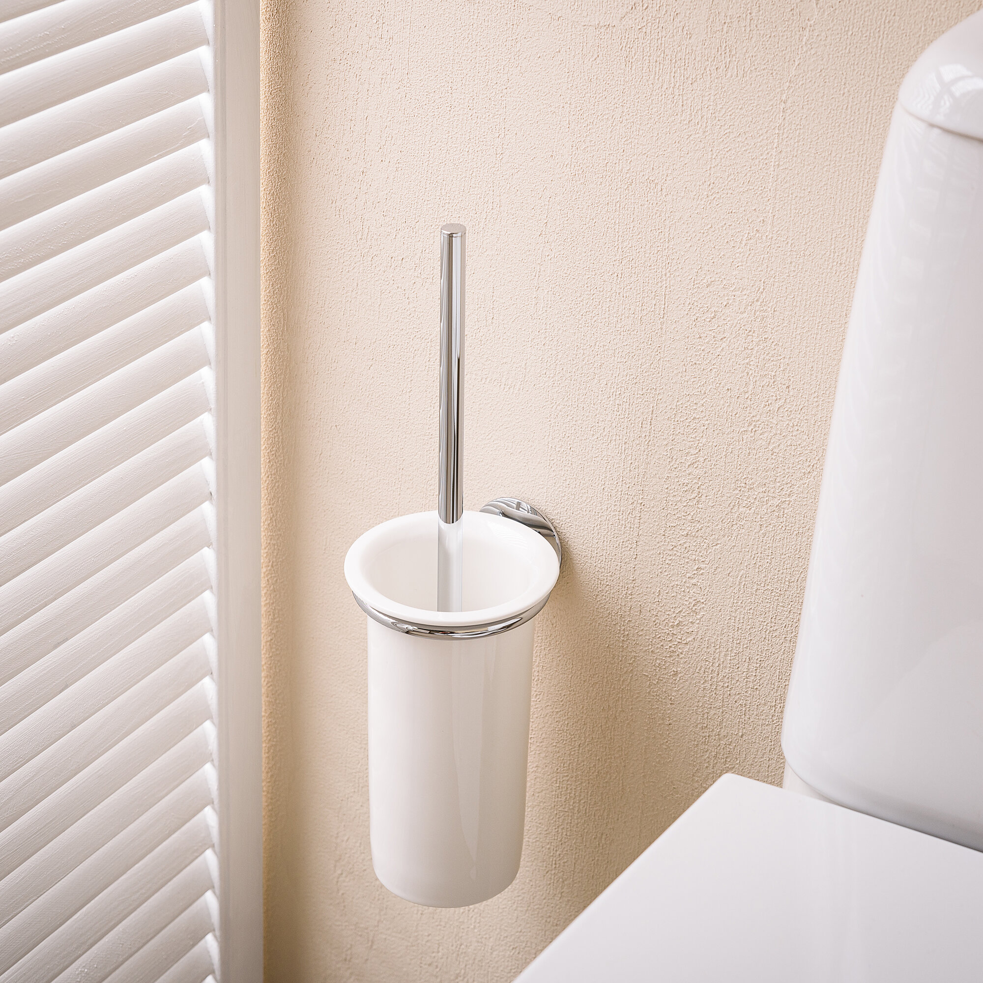 Настенный ершик Moroshka Lirio легко и надёжно крепится к стене, что исключает его случайное падение.Колба для ёршика изготовлена из керамики, а держатель - из цинкового сплава с хромированным покрытием. Такой материал исключает появление ржавчины, а значит изделие надолго сохранит первозданный внешний вид.В сочетании с другими аксессуарами из коллекции Lirio позволит оформить интерьер в едином стиле.