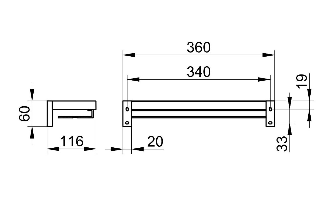 - Размеры (ШхВхГ): 360х60х116 мм.