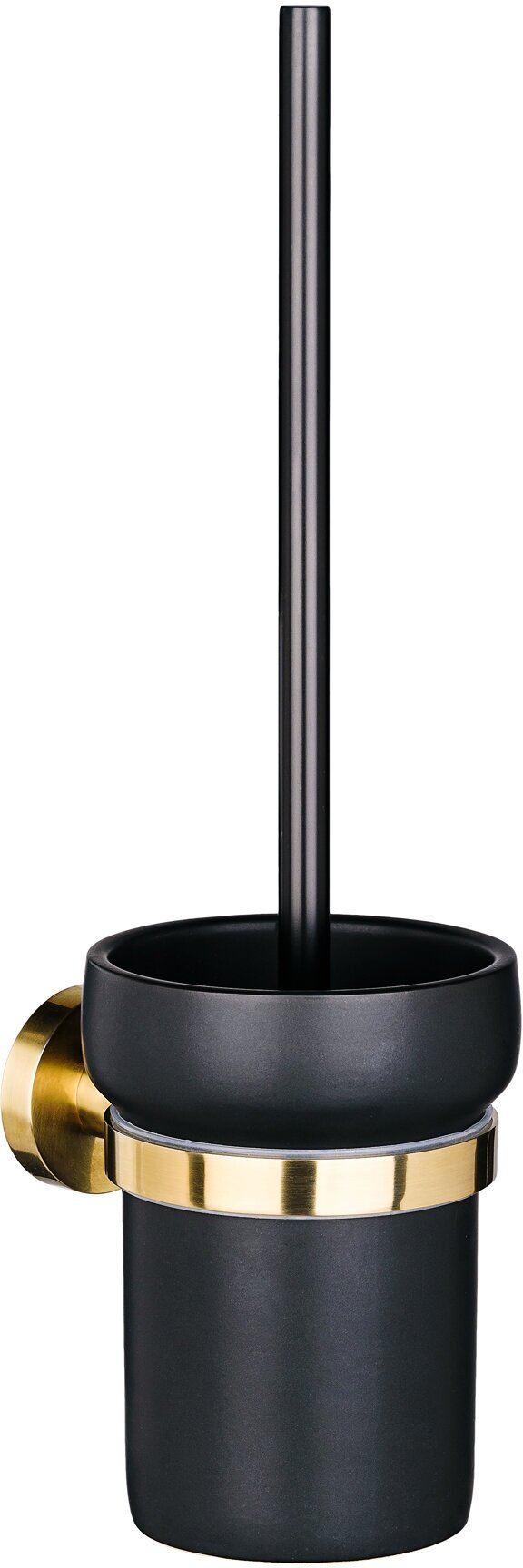 Настенный керамический ёршик крепится к стене при помощи шурупов. Основа изделия выполнена из прочной керамики, а крепление — из цинкового сплава с гальваническим покрытием, которое обеспечивает ему защиту от ржавчины. Чёрная матовая керамика делает аксессуар уникальным элементом интерьера, позволяя вписывать его в разные современные стили. Ёршик продолжает коллекцию Oro Nero и в сочетании с другими аксессуарами помогает создать гармоничный интерьер в едином стиле.