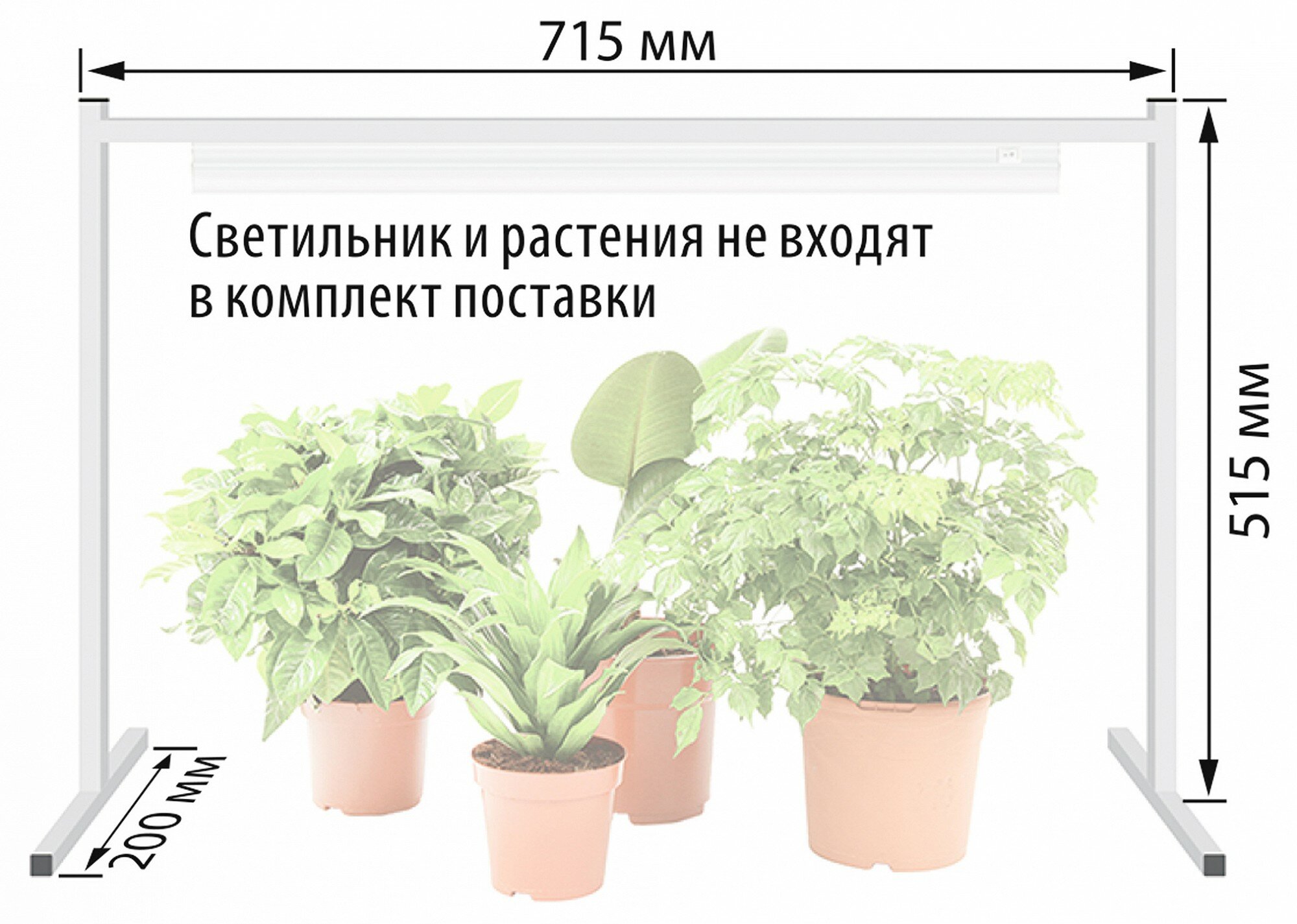 Универсальная подставка для крепления фитосветильника. Подставка выполнена из стального профиля белого цвета, максимальная нагрузка 2 кг. В комплект входит подставка и набор крепежа для ее сборки.
