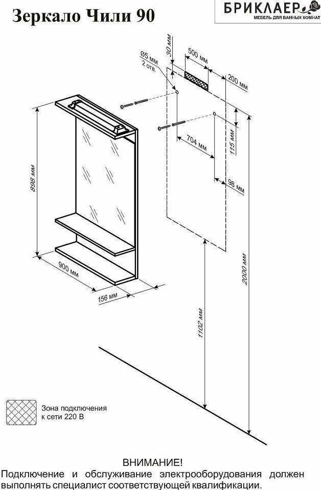 | Оснащение зеркала | подсветка, розетка, крепления, полка |
