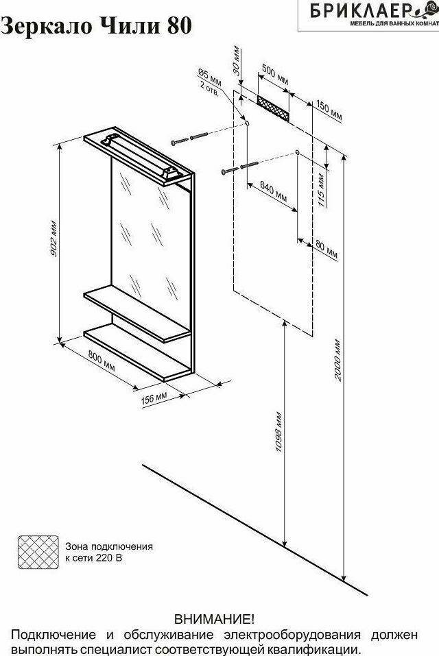 | Оснащение зеркала | подсветка, розетка, крепления, полка |