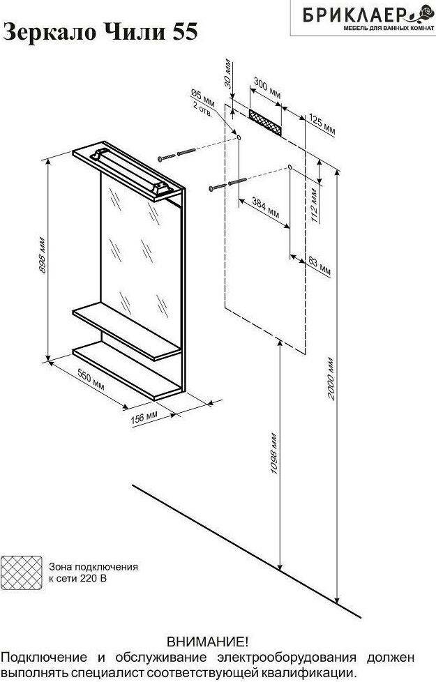 | Оснащение зеркала | подсветка, розетка, крепления, полка |